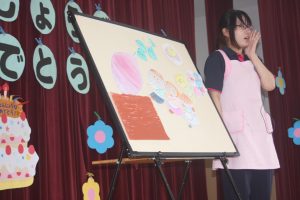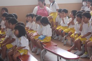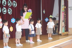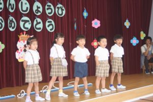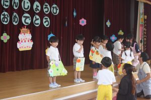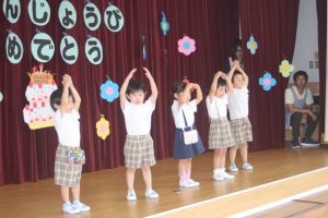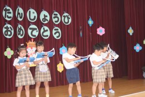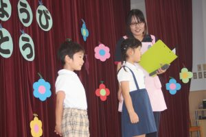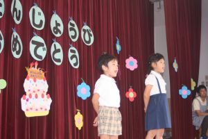今日は、9月お誕生日のお友だちをお祝いしました。どの学年も堂々と立派な発表でした。かっこいい姿をお父さんやお母さんに見てもらって良かったですね。