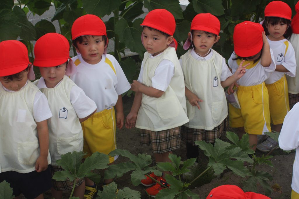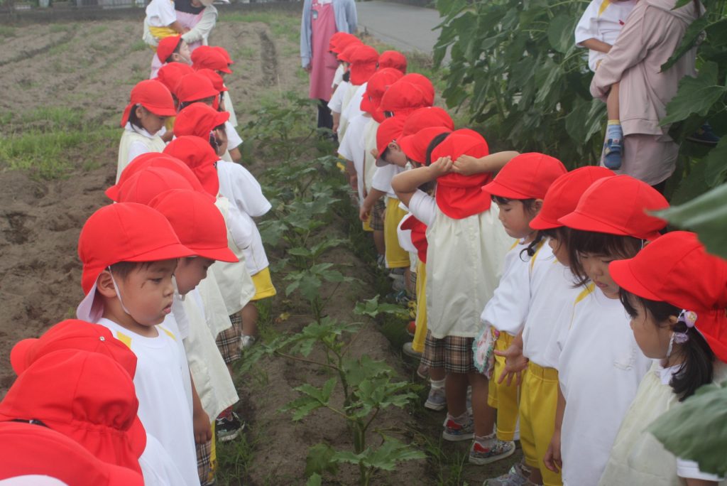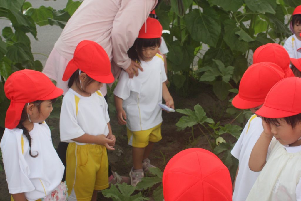 朝、オクラの観察をしました。ずいぶんと大きくなり、毎日収穫できます。最後は、大きなオクラを育ててスタンプにする予定です。