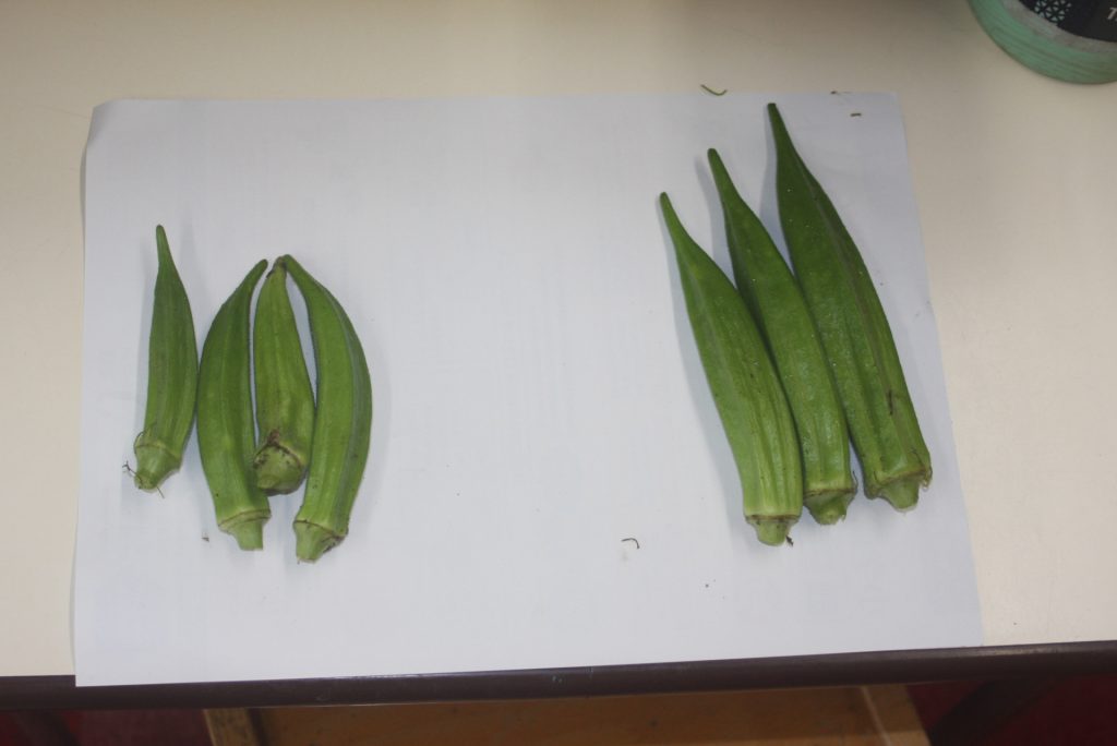 はじめてのオクラ収穫となります。大きくなりすぎたオクラもあります。