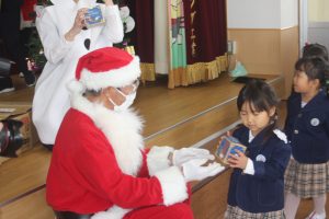 クリスマス会 2025年12月23日 園の様子 今日は、クリスマス会を行いました。サンタクロースのお友だちがたくさん扶桑幼稚園に来てくれました。そして、北の国からやってきたサンタクロースがみんなにプレゼントを渡してくれました。サンタさん、ありがとう!