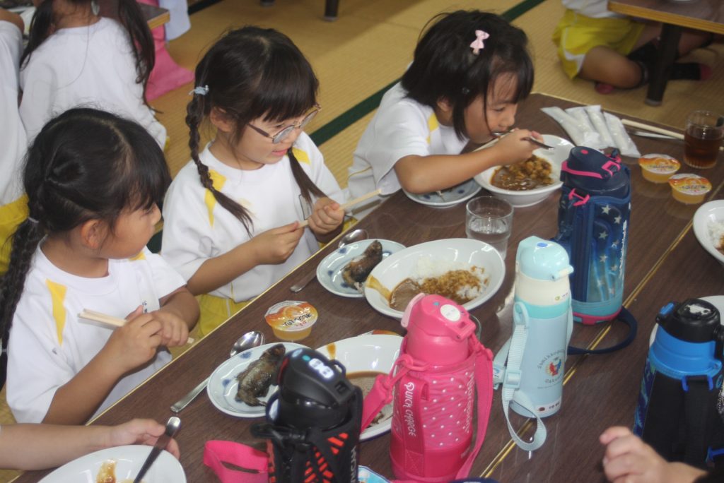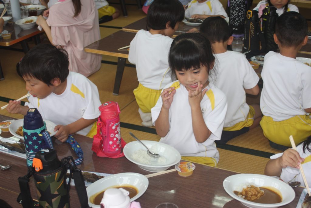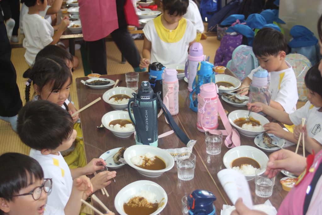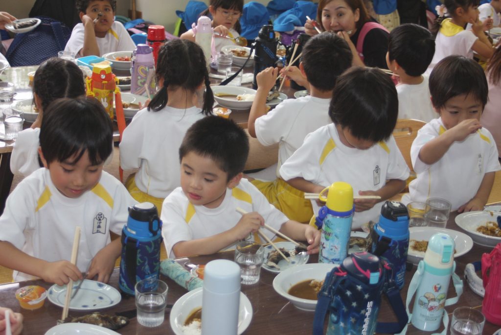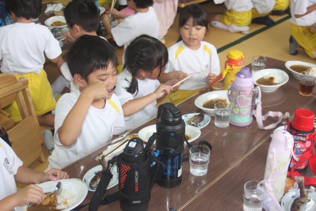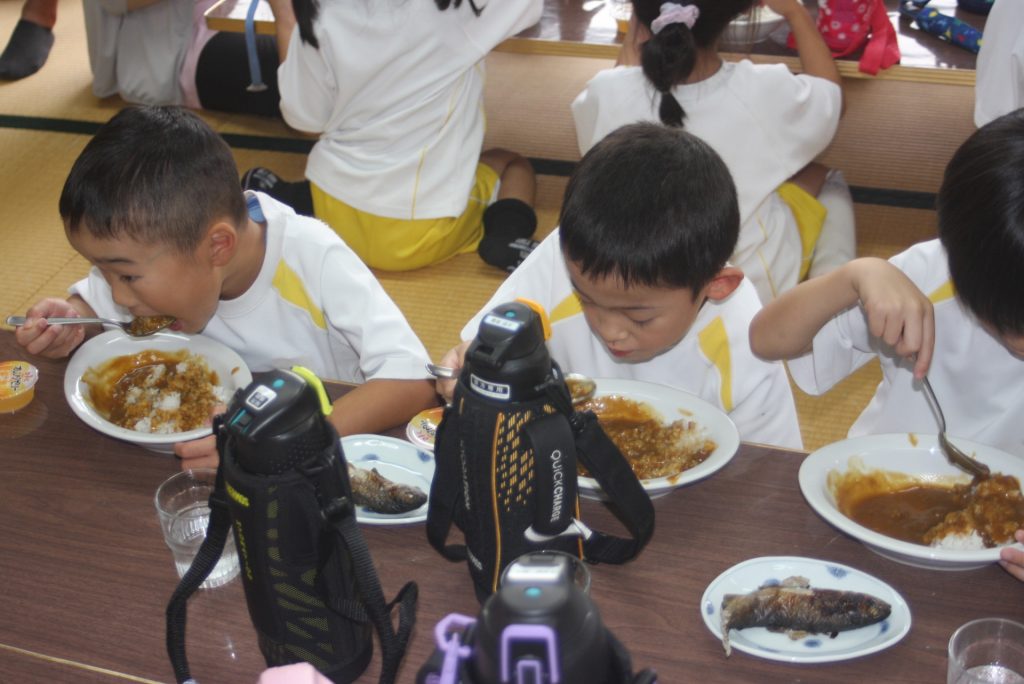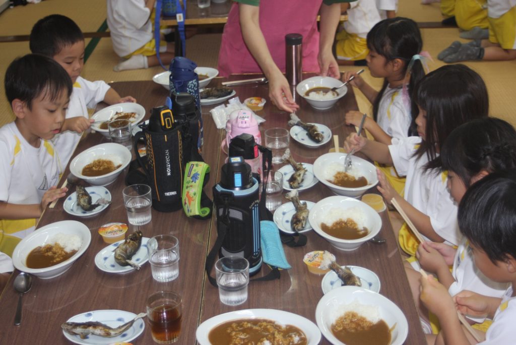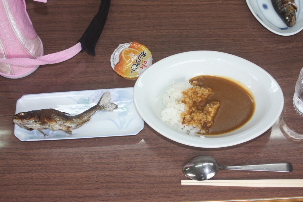 夕食は、カレーとゼリー、そしてマスの塩焼きです。