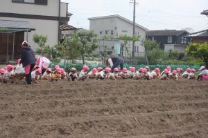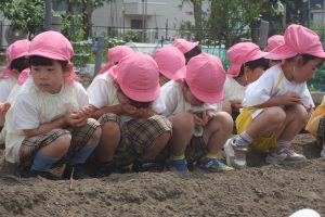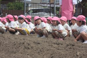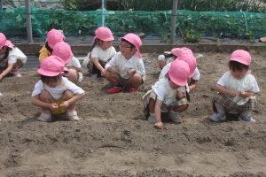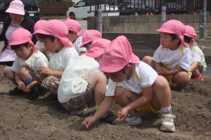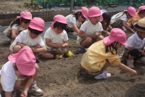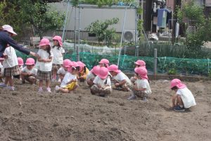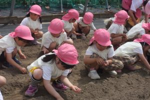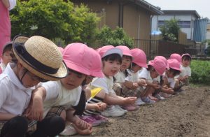 昨年度の桃学年が育てたヒマワリの種を今年の桃学年(年中)が種まきを行いました。早く芽が出るといいですね。