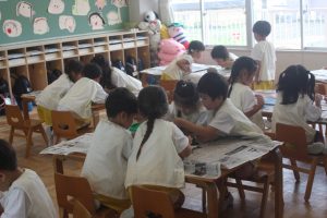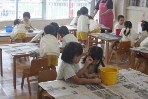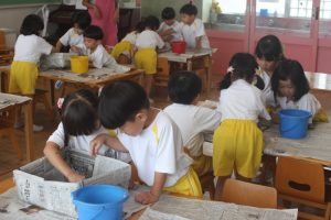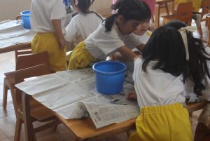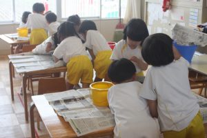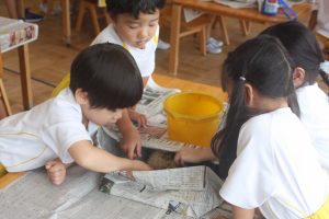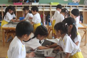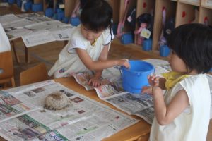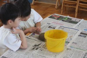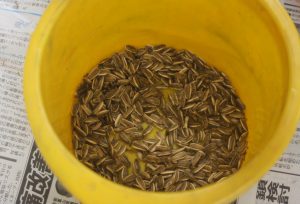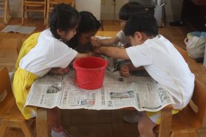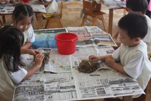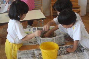 ヒマワリ種採り 桃学年 2025年09月05日 桃学年(年中児) 急遽、本日「ヒマワリの種採り」を行いました。桃学年(年中)のみんなは、もう夢中です。大リーグの野球選手は、ヒマワリの種をムシャムシャと食べていますね。9日(火)予定でしたので、本日お休みのお友だちは、9日(火)に種採りを行います。