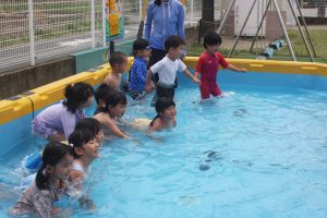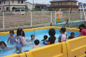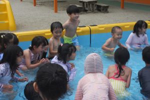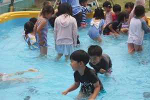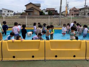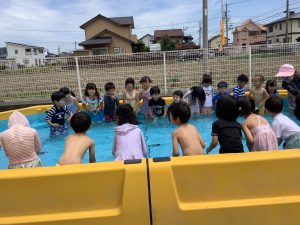 先週の金曜日に中止となったプール遊びが今日ようやく実施できました。プールは、笑顔であふれています。