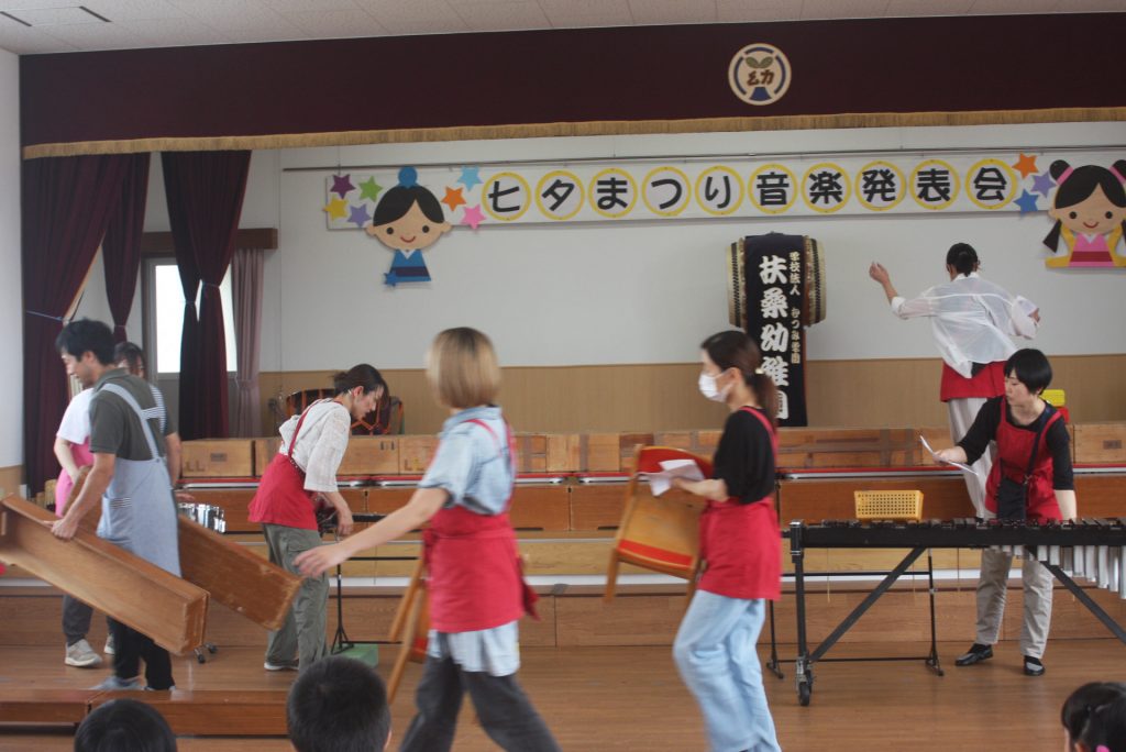 七夕まつり音楽発表会リハーサル(青学年) 2024年06月27日 青学年(年長児) 本日、予定通りリハーサルを終えることができました。子どもたちは、本番と同様に一生懸命に演奏を披露しました。本番が楽しみです。また、愛園会の役員・委員の皆様がリハーサルからお手伝いいただきました。ありがとうございました。本番当日も、よろしくお願いいたします。