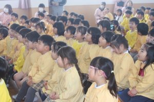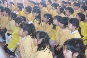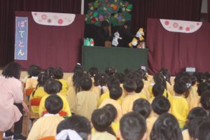 人形劇観賞 2026年02月18日 園の様子 愛園会 今日は、人形劇を鑑賞しました。この行事は、愛園会が主催してくれたものです。人形劇団「ぽてとん」さんをお招きして、演目「虹色のどんぐり」を鑑賞しました。随所随所に子どもたちを喜ばせる場面があり、大盛り上がりの鑑賞会となりました。ぽてんとんさん愛園会さん、ありがとうございました。