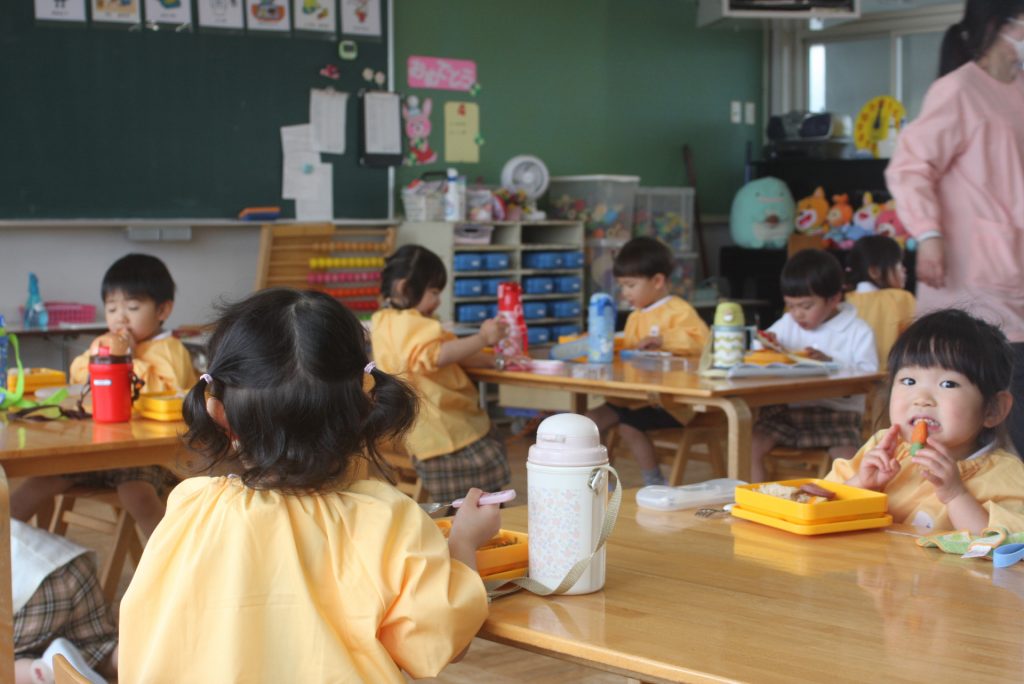 今日も元気に頑張っています 2024年04月09日 赤学年(年少児) 幼稚園生活2日目。朝、お母さんとのお別れで泣いていた園児も、元気に活動しています。トイレ移動の際の「汽車ポッポ」も上手になりました。