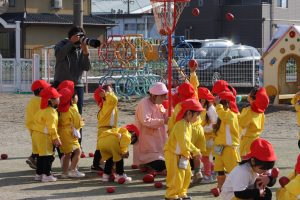 体育教室 赤学年 2025年12月17日 赤学年(年少児) 今日は、比較的温かい日となりました。赤学年(年少)体育教室では、鬼ごっこから始まり、玉入れも楽しみました。インフルエンザ・風邪に負けない丈夫な体をつくりましょう。