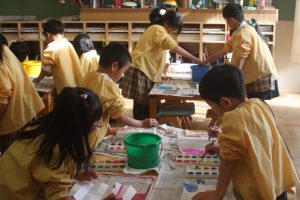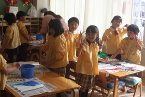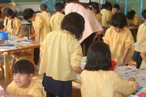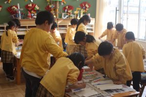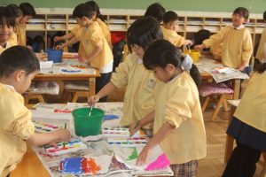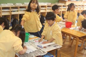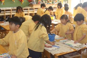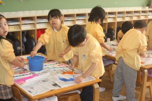作品展 大物共同作品の部品作り 2026年01月20日 青学年(年長児) 作品展が、2月7日と近づいてきています。子どもたちは、熱心に作品作りを進めています。今日は、青学年大物共同作品の部品を作りました。この部品が、どの部分になるのでしょうか。楽しみにしてください。