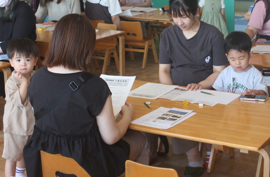 入園説明会 2024年08月09日 園の様子 次年度入園を考えてみえる方に来ていただきました。猛暑の中、誠にありがとうございました。今後、ご不明な点や相談したい事がありましたら、10月1日出願までにお尋ねください。