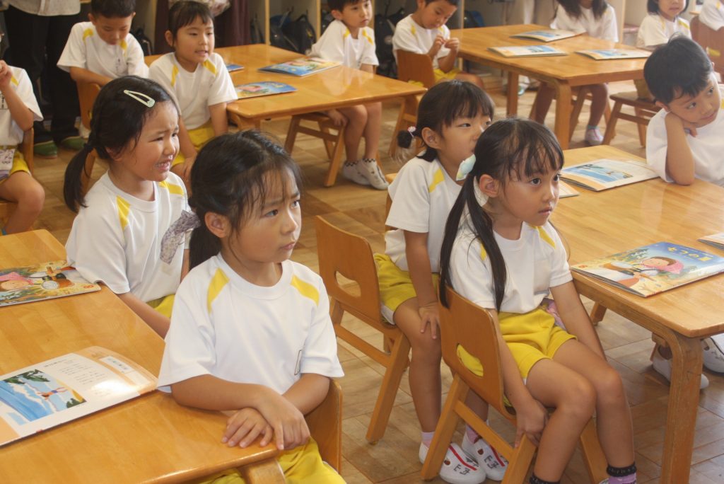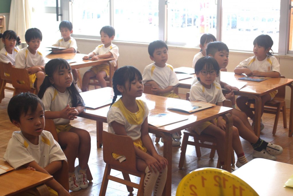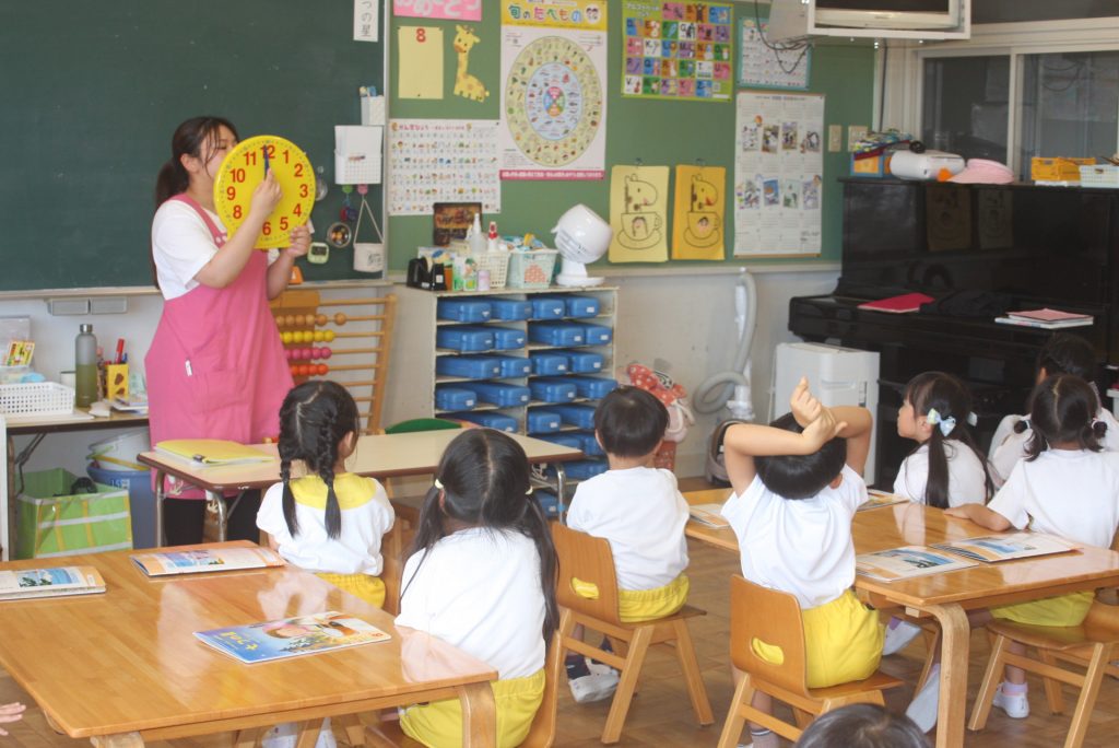 全児夏季保育 2024年08月21日 園の様子 今日から、全員での夏季保育です。久しぶり顔を合わせる園児もいます。日焼けして真っ黒になった園児もいました。明日まで、厳しい暑さが続きそうです。室内で朝礼を行い、水分補給の大切さを伝えました。