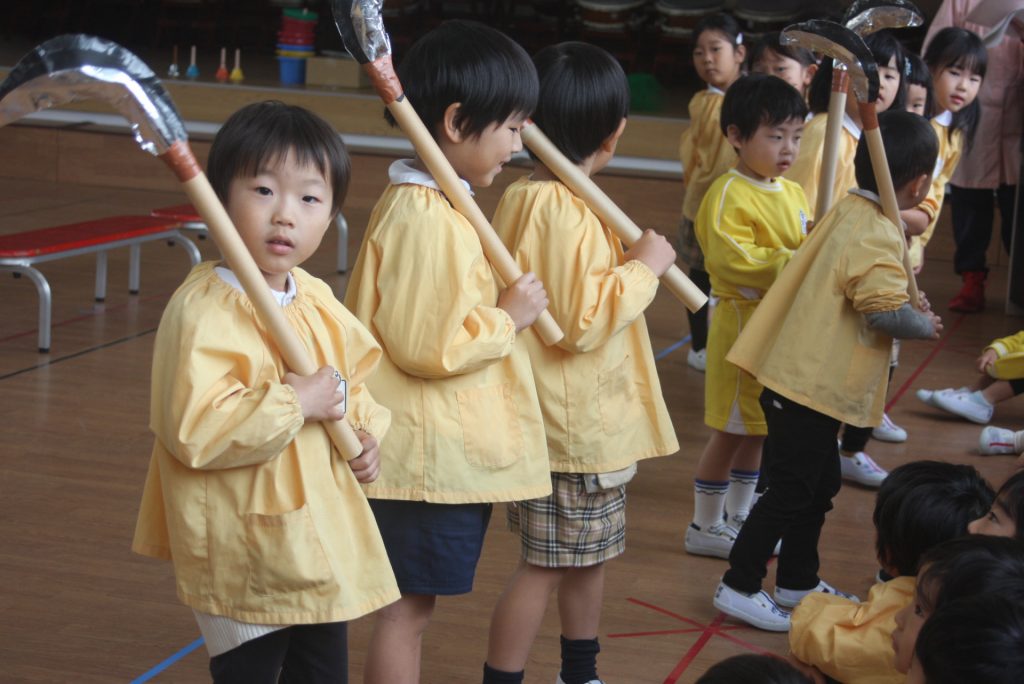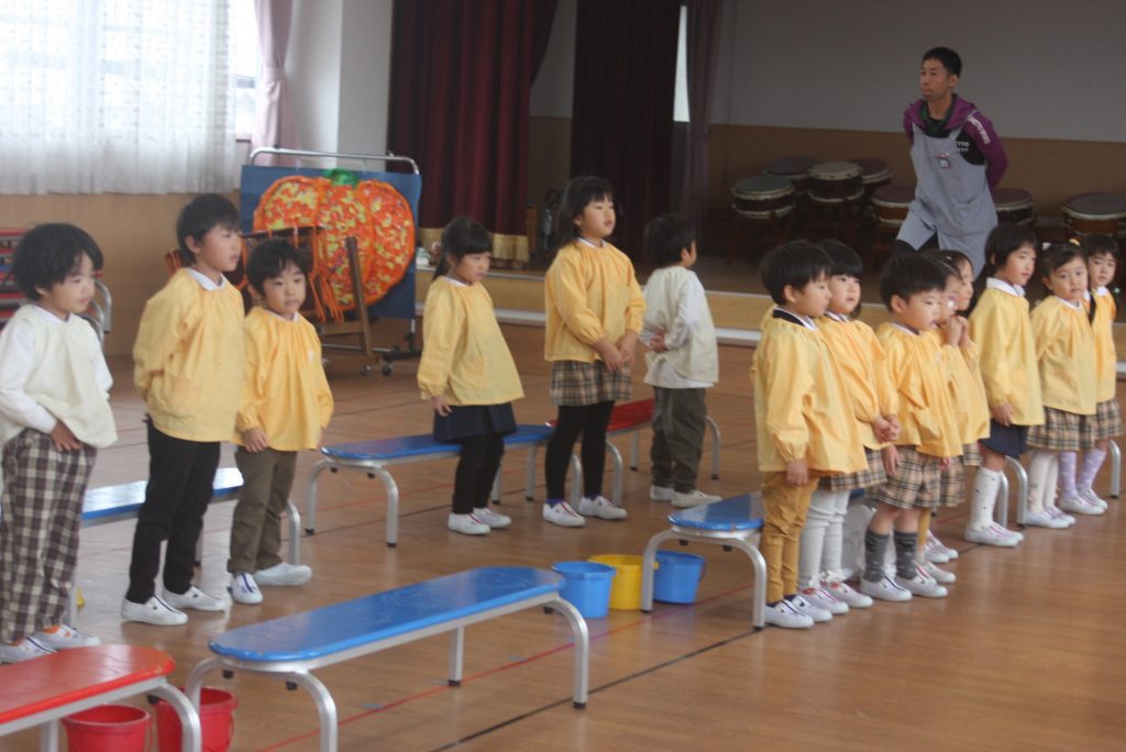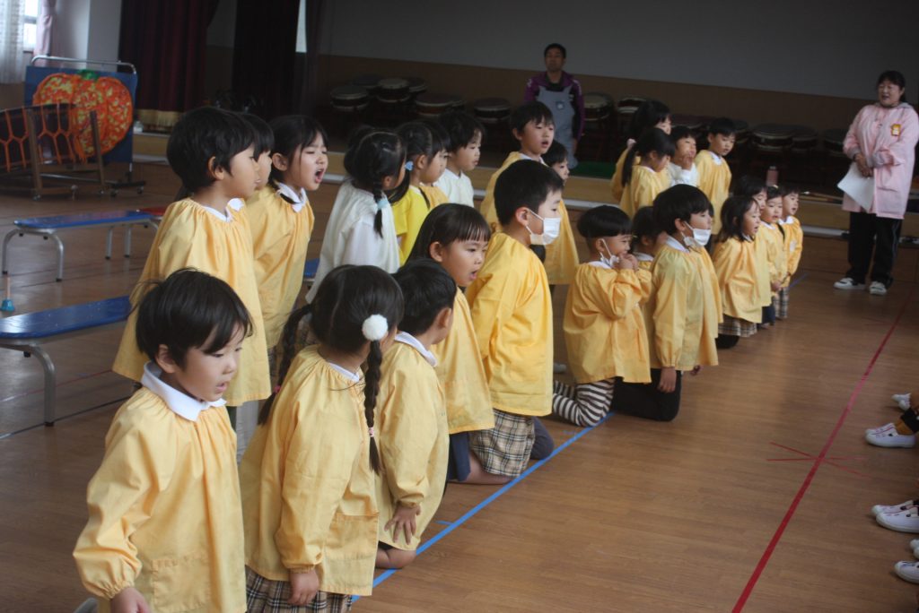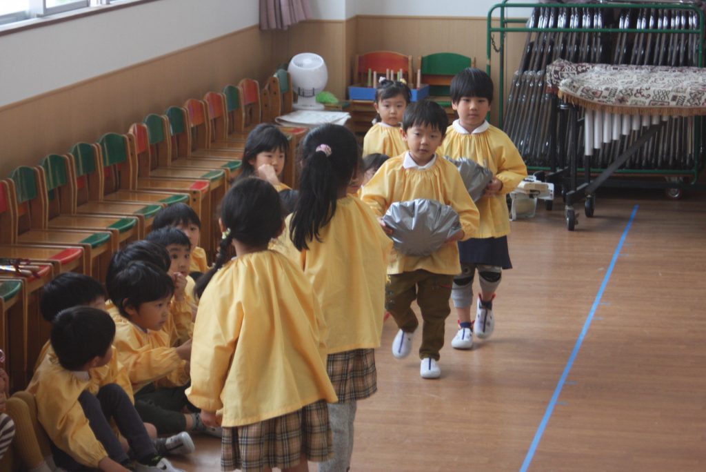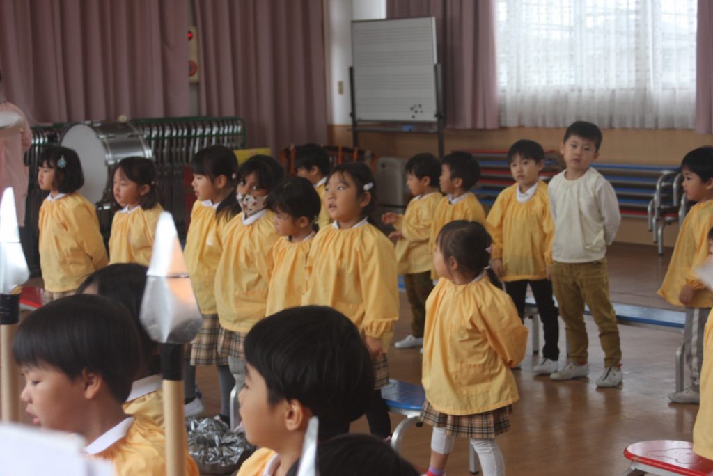 劇の練習 2024年11月20日 桃学年(年中児) 今日は、遊戯室で劇の練習をしました。クラスの発表を互いに見て、勉強しました。人に見られることは、緊張します。本番は、もっと大勢の人に見てもらいます。自信をもって、役を演じましょうね。