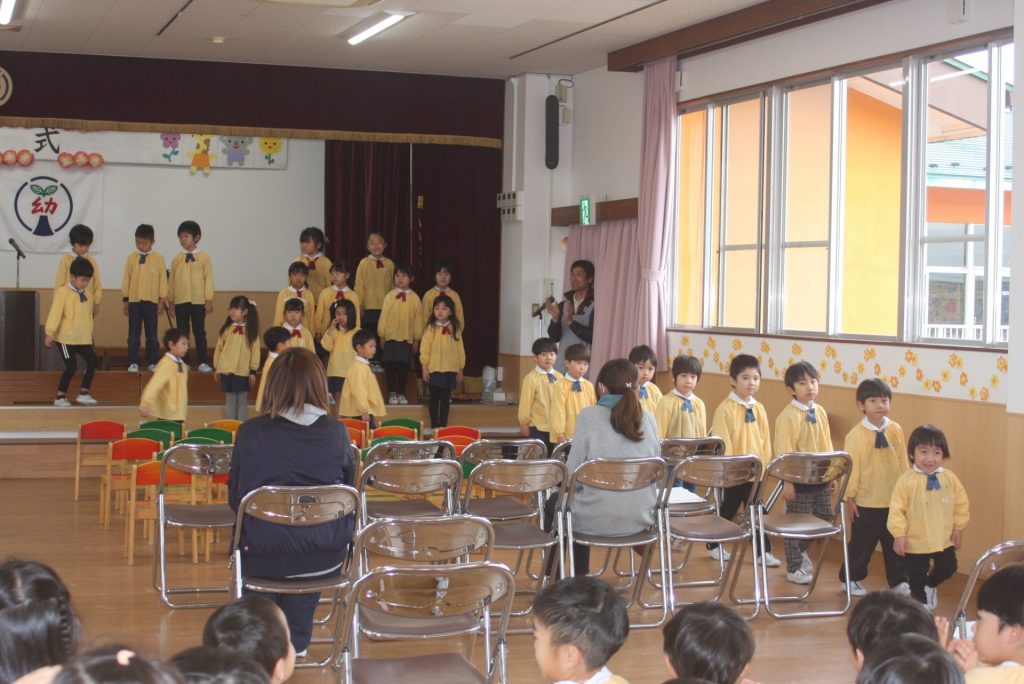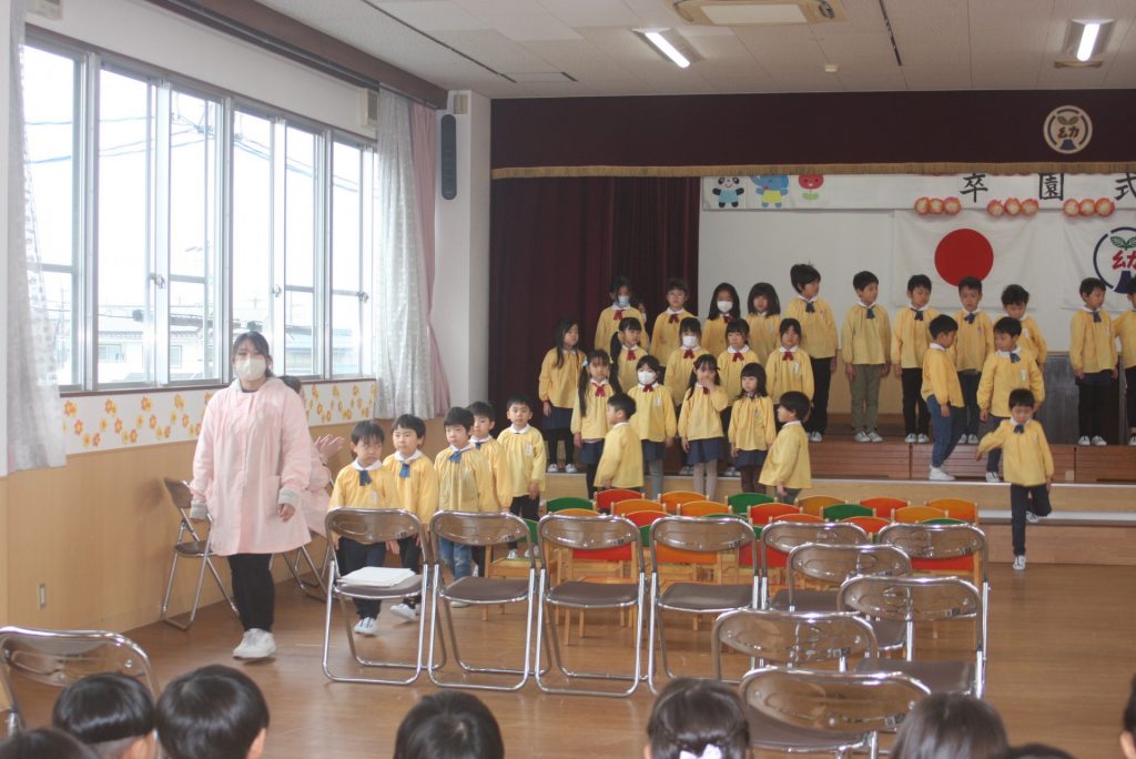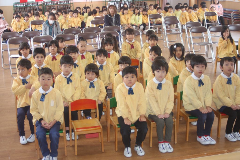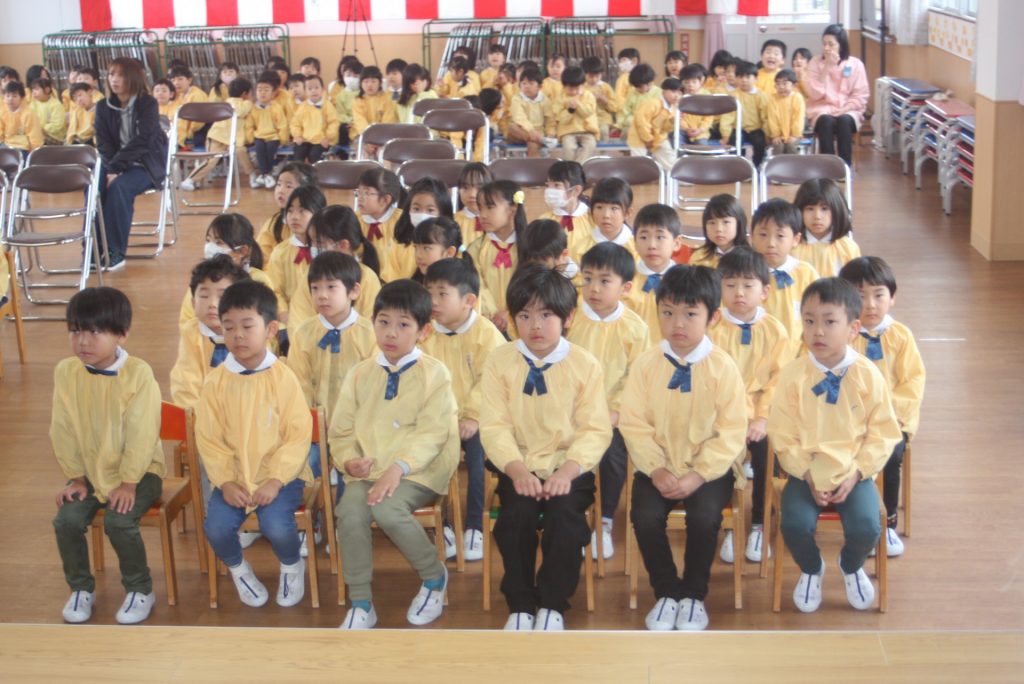 卒園式リハーサル 2025年03月11日 園の様子 本日、卒園式リハーサルを行いました。青学年(年長)のみなさんは、これまでの練習の通り、堂々とした態度でリハーサルを進めました。昨年度から桃学年(年中)のみなさんにも、リハーサルに参加してもらい1年後の自分を思い描いてもらっています。桃学年のみんなも、しっかりリハーサルに参加できましたね。