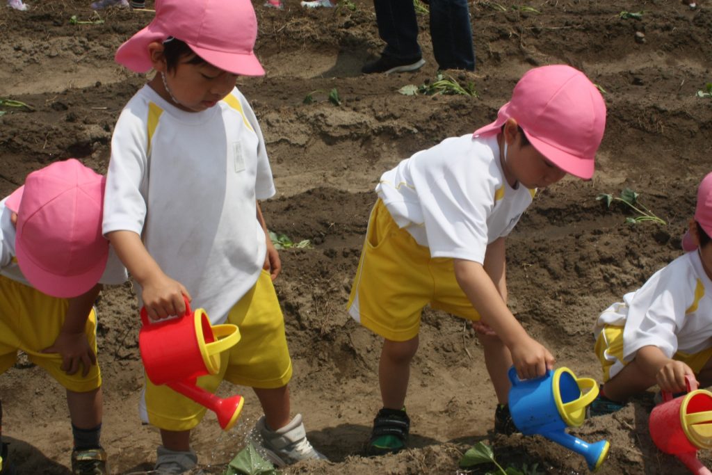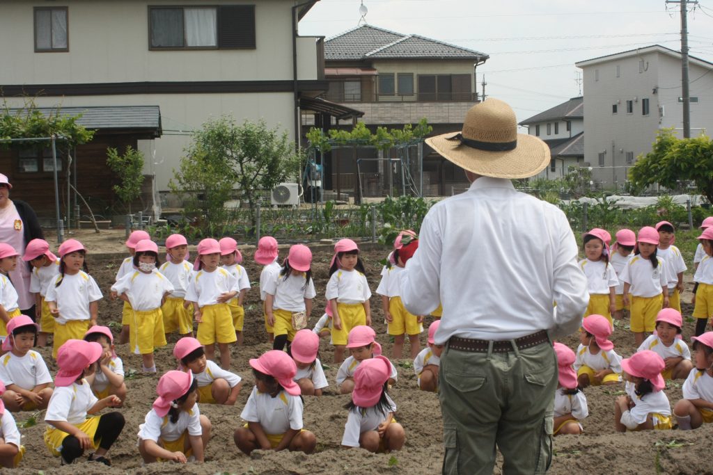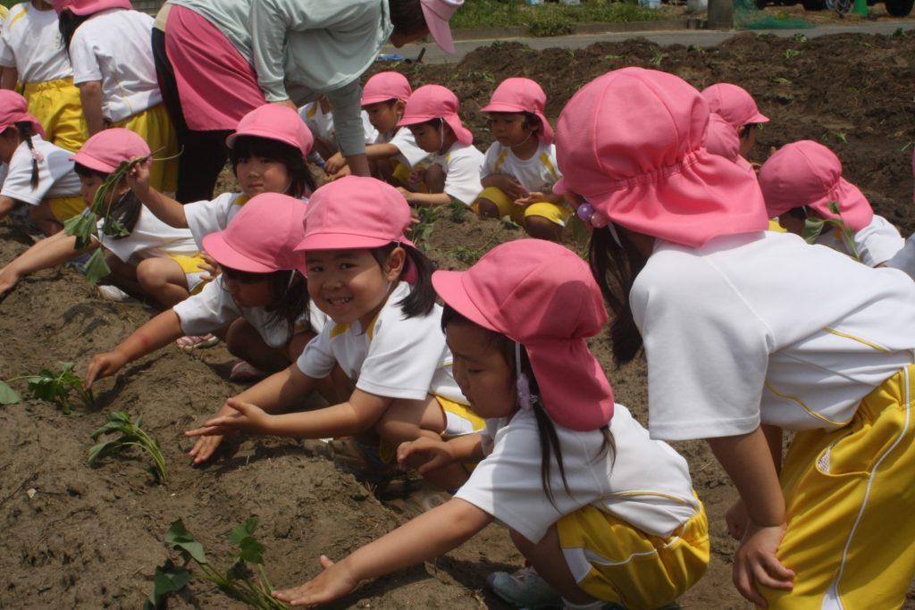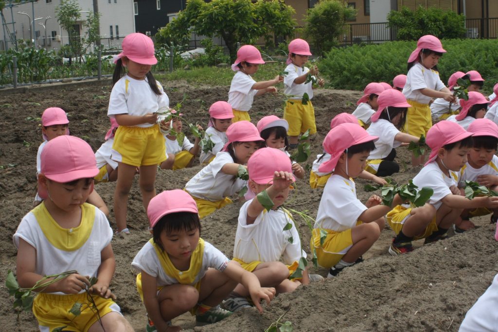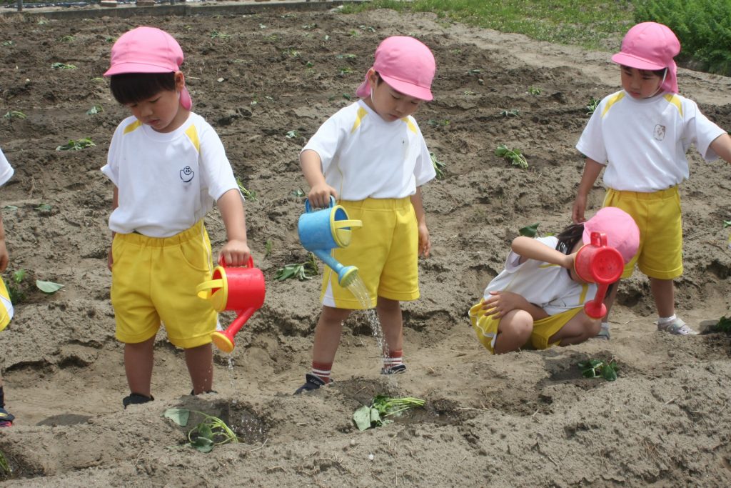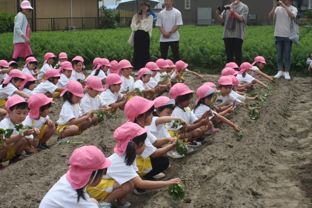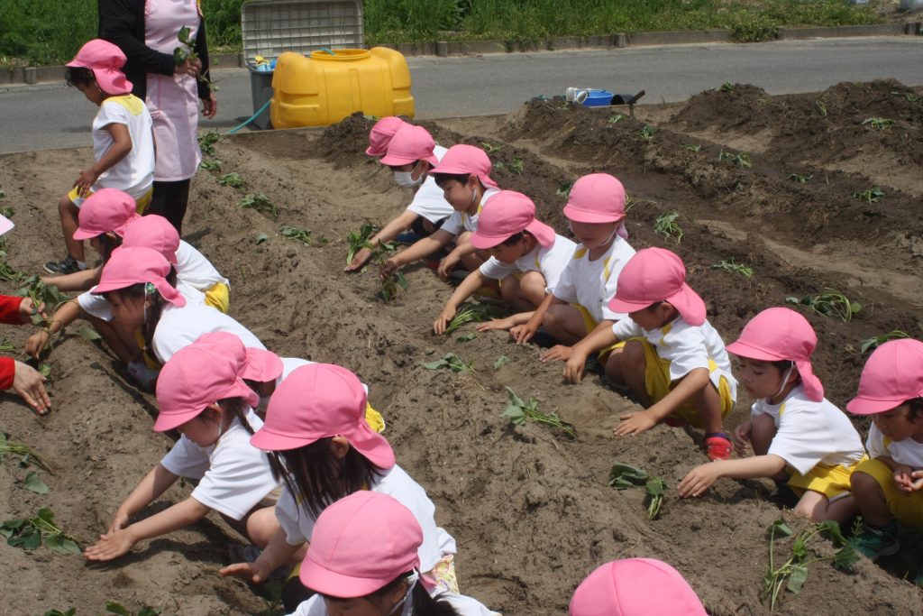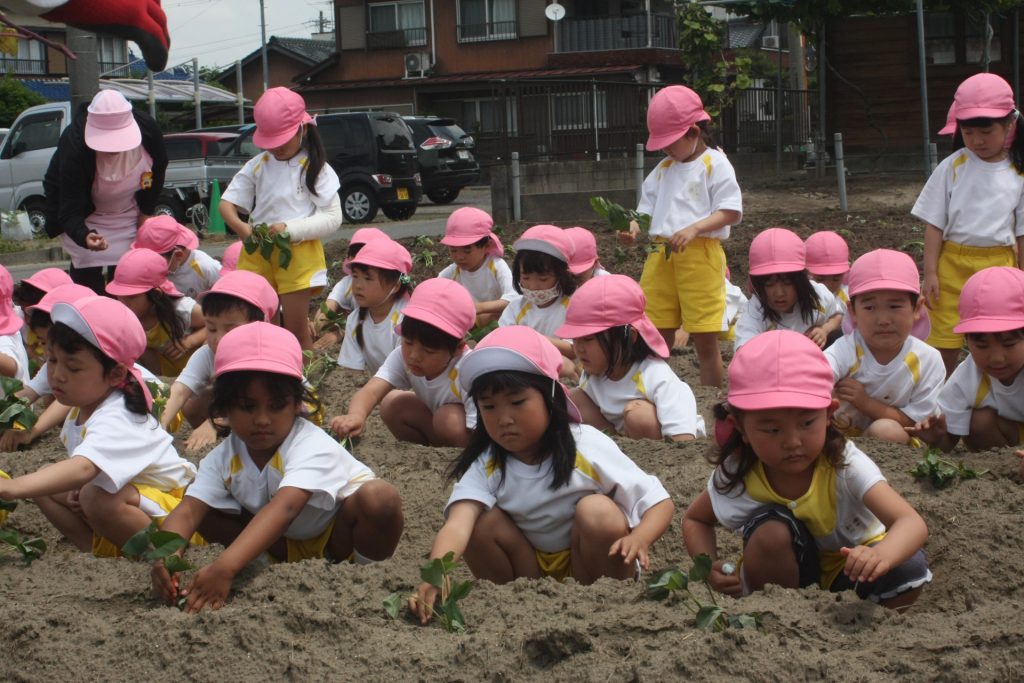 参観週間3日目(桃学年) 2024年05月22日 桃学年(年中児) 参観週間も、3日目となりました。本日は、50名ほどの保護者様に参観していただきました。サツマイモのツルを畑に植えました。大きな芋が収穫できるように、しっかりお世話をしたいと思います。