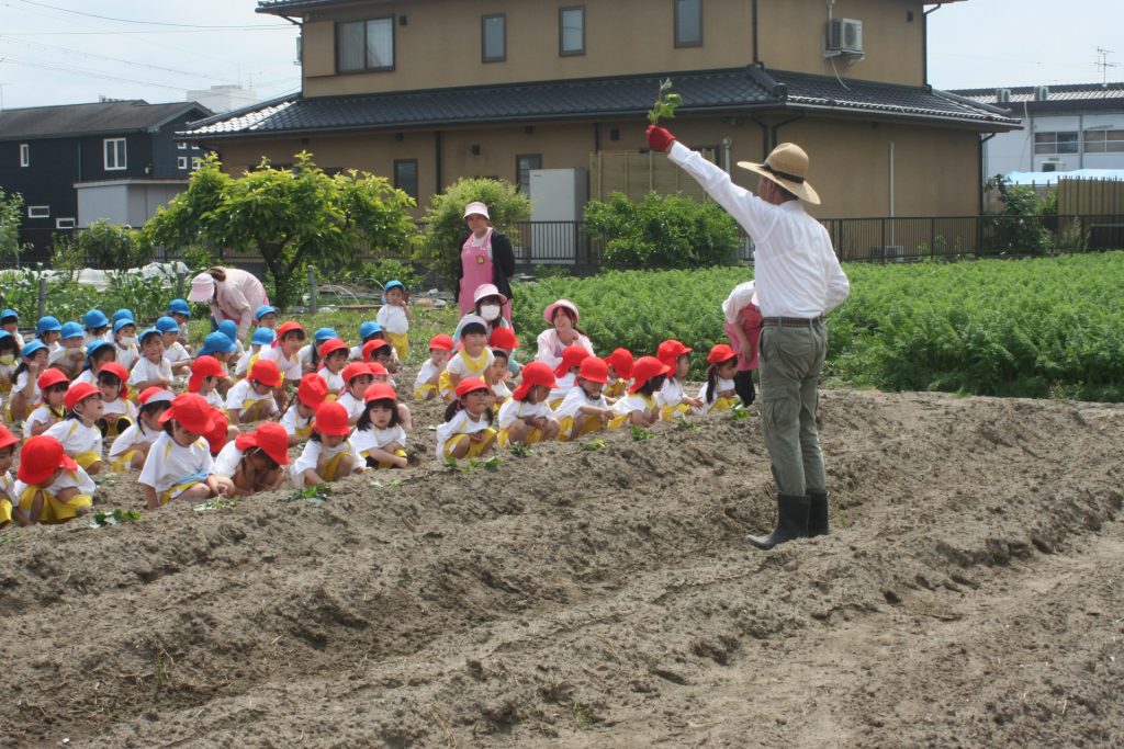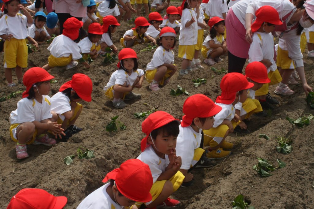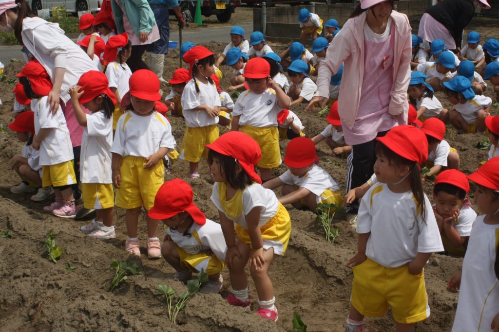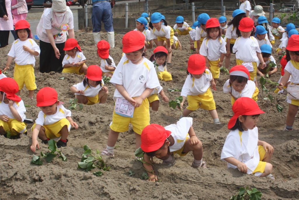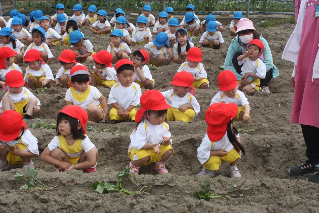 参観週間3日目(赤学年) 2024年05月22日2024年06月11日 赤学年(年少児) 参観週間も、3日目となりました。本日は、50名ほどの保護者様に参観していただきました。サツマイモのツルを畑に植えました。大きな芋が収穫できるように、しっかりお世話をしたいと思います。