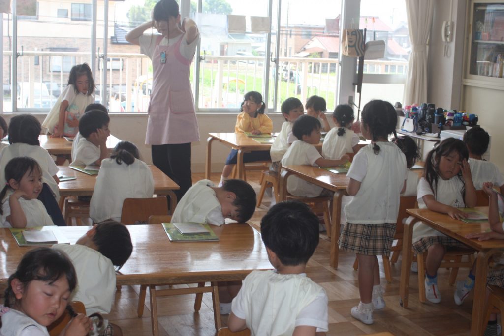 参観週間5日目(桃学年) 2024年05月24日 桃学年(年中児) 今日が、参観週間最終日でした。55名ほどの保護者の方に参観いただきました。ありがとうござおました。今日は、教室での学習・活動が中心でした。今週は、子どもたちは張り切っていました。頑張っていたことをお家でもほめてやってください。