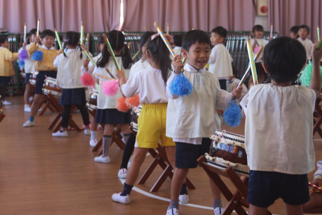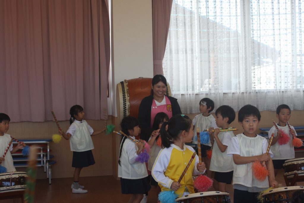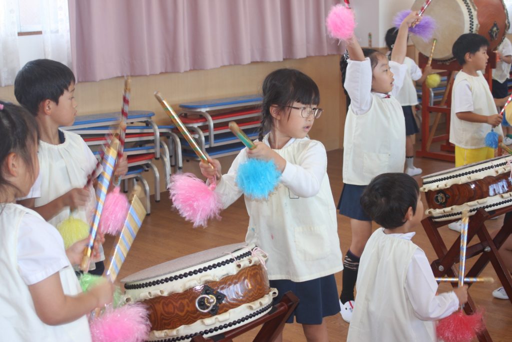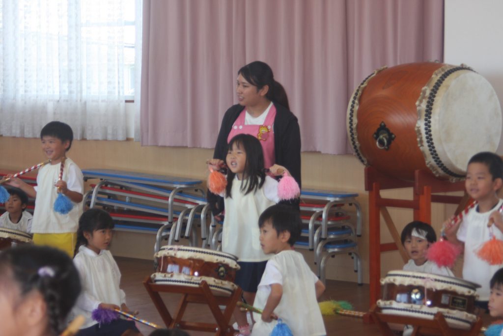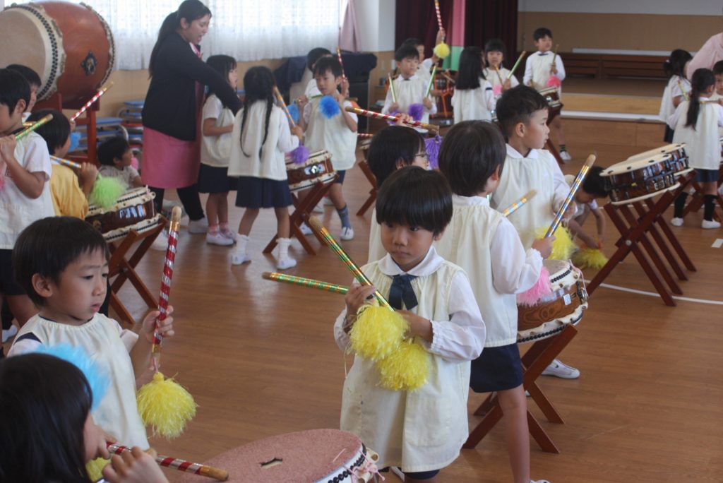運動会を終え、次は生活発表会に向けての練習です。今日は、和太鼓の先生に教えてもらいました。みんな、気合が入っています。