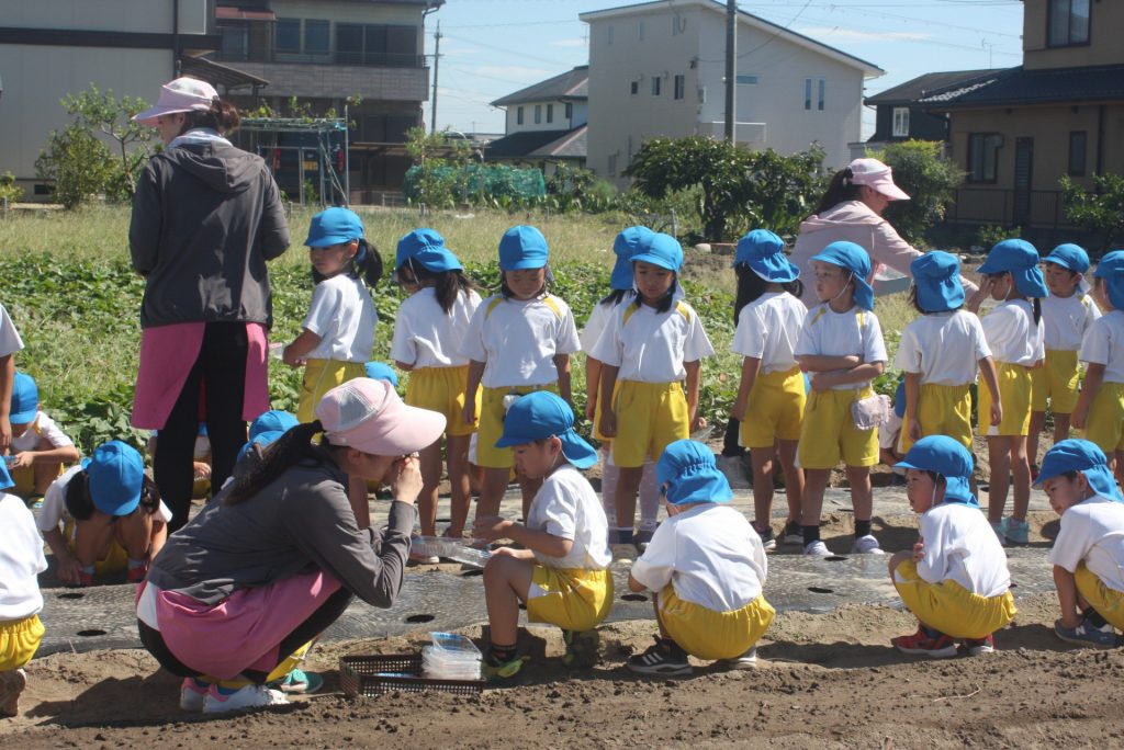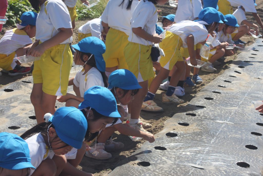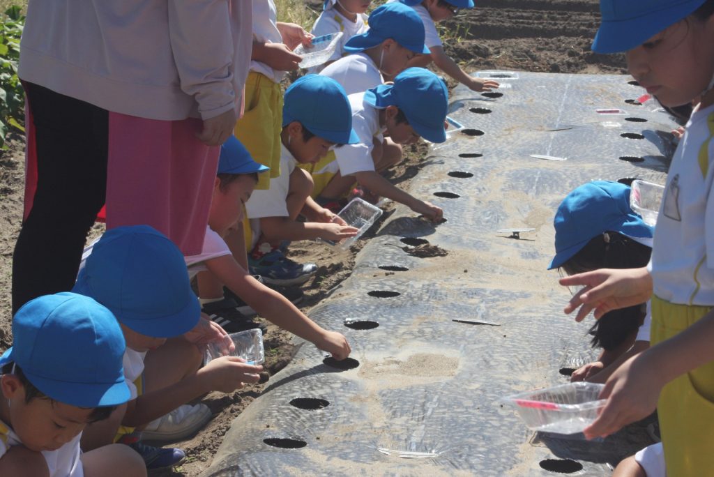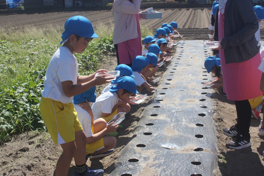 朝一番に大根の種まきを行いました。一人6粒ずつ蒔きました。11月には、立派な大根が収穫できるといいです。