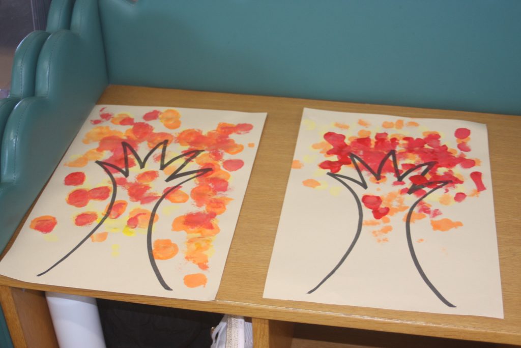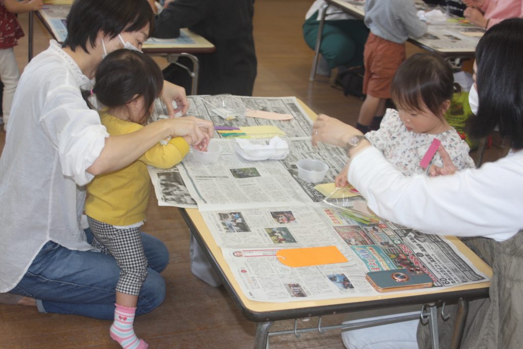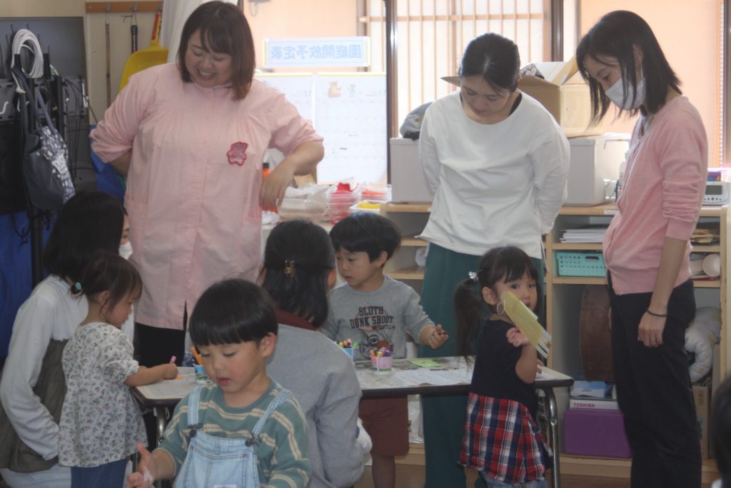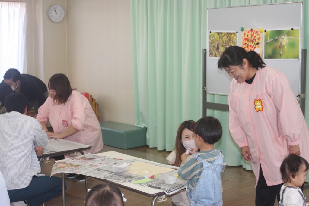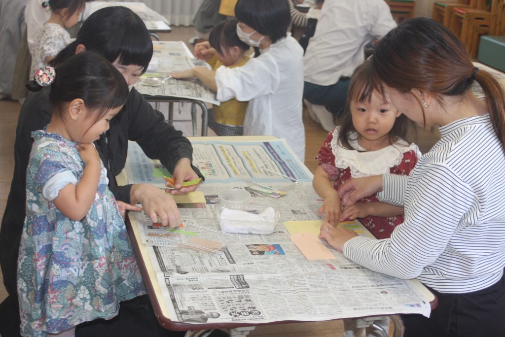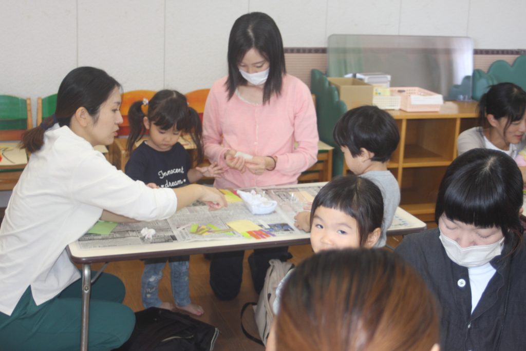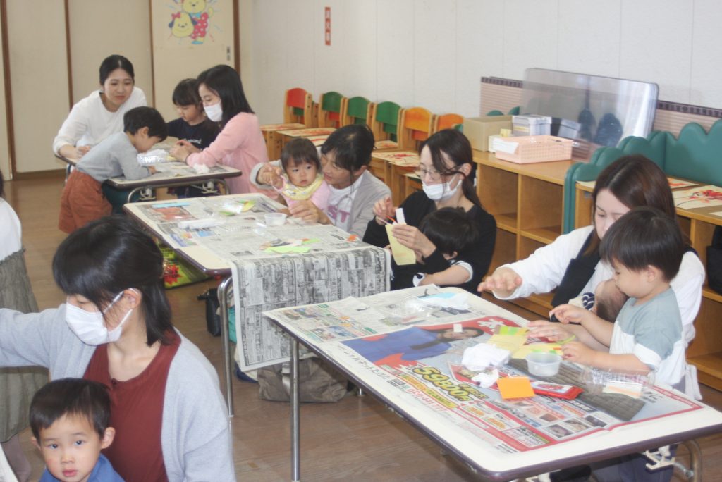 子育て広場11月 2024年11月13日 園の様子 未就園児を対象に「子育て広場11月」を行いました。今回は、制作を楽しみました。秋をテーマに「色づいた木」「みのむし」を作りました。親子で楽しく活動できました。