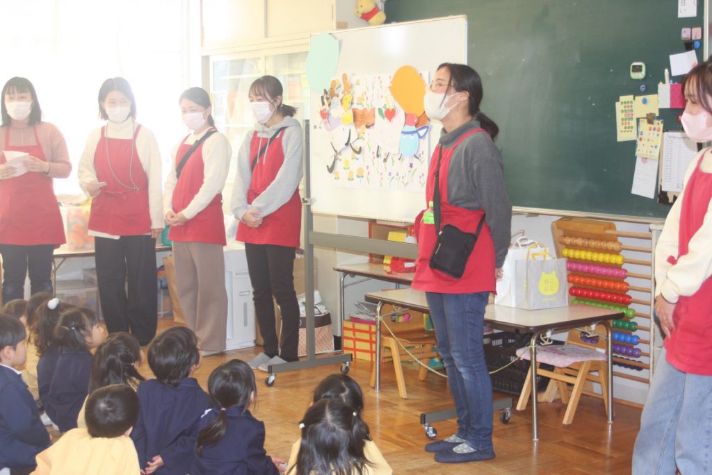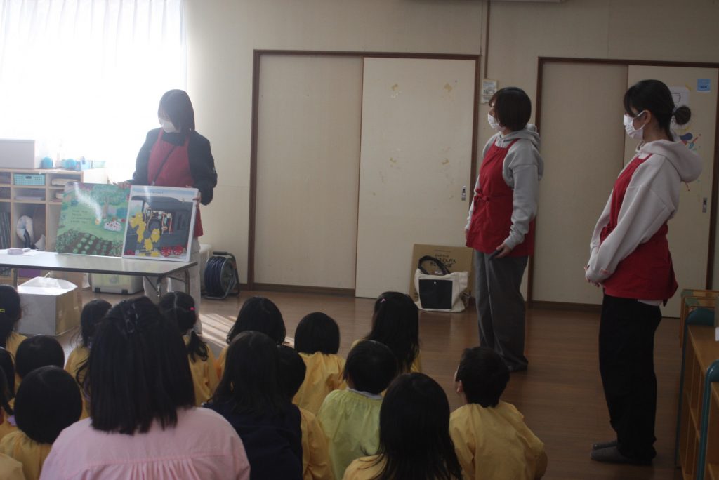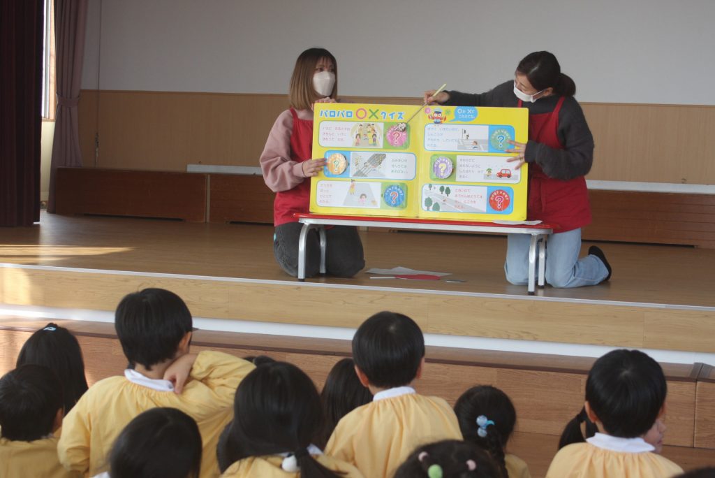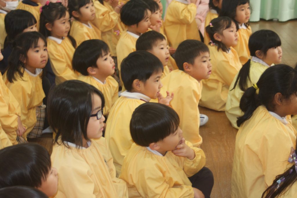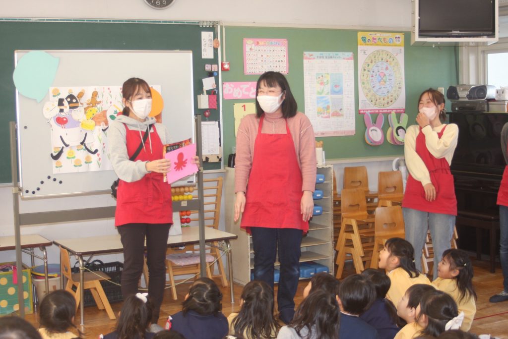 愛園会 読み聞かせ 2025年01月14日 愛園会 午後は、愛園会役員・委員の皆様に読み聞かせを行ってもらいました。絵本や紙芝居の読み聞かせでは、子どもたちは前のめりになり真剣な表情で聞き入ってました。クイズでは、大いに盛り上がり楽しいひと時となりました。本当にありがとうございました。