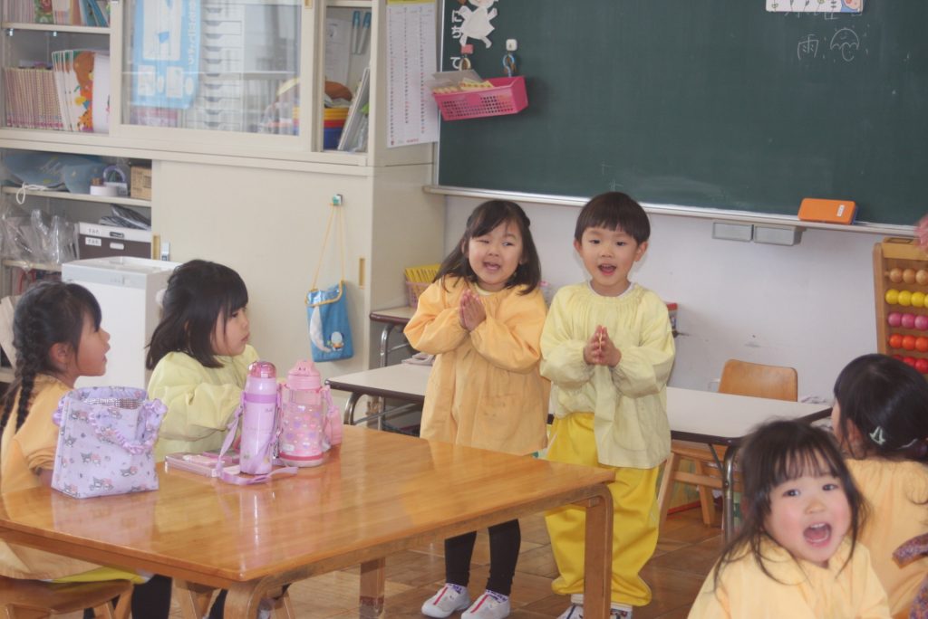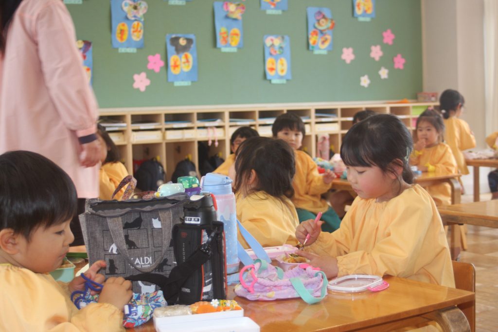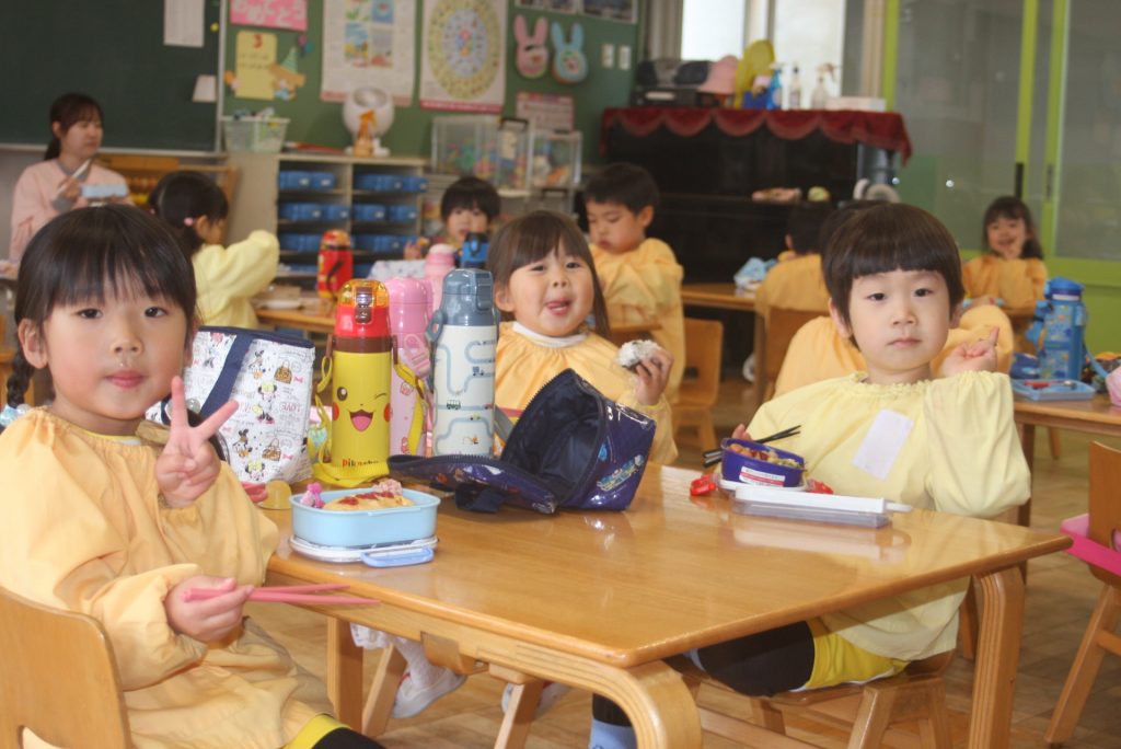 愛情弁当の日 赤学年 2025年03月05日 赤学年(年少児) 今日は、水曜日「愛情弁当」の日です。「おべんとう おべんとう うれしいな ・・・」みんな、笑顔でおいしくいただきました。ごちそうさまでした。