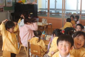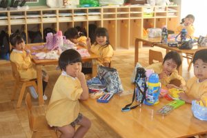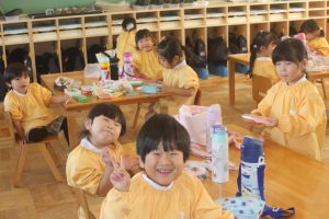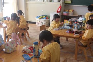 愛情弁当の日 赤学年 2025年11月26日 赤学年(年少児) 今日は、愛情弁当の日です。生活発表会の練習をがんばった後のお弁当は、格別です。「完食したよ。」と教えてくれるお友だちがいっぱいいました。今日も、愛情弁当ごちそうさまでした。