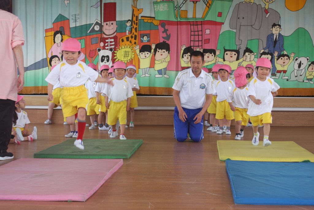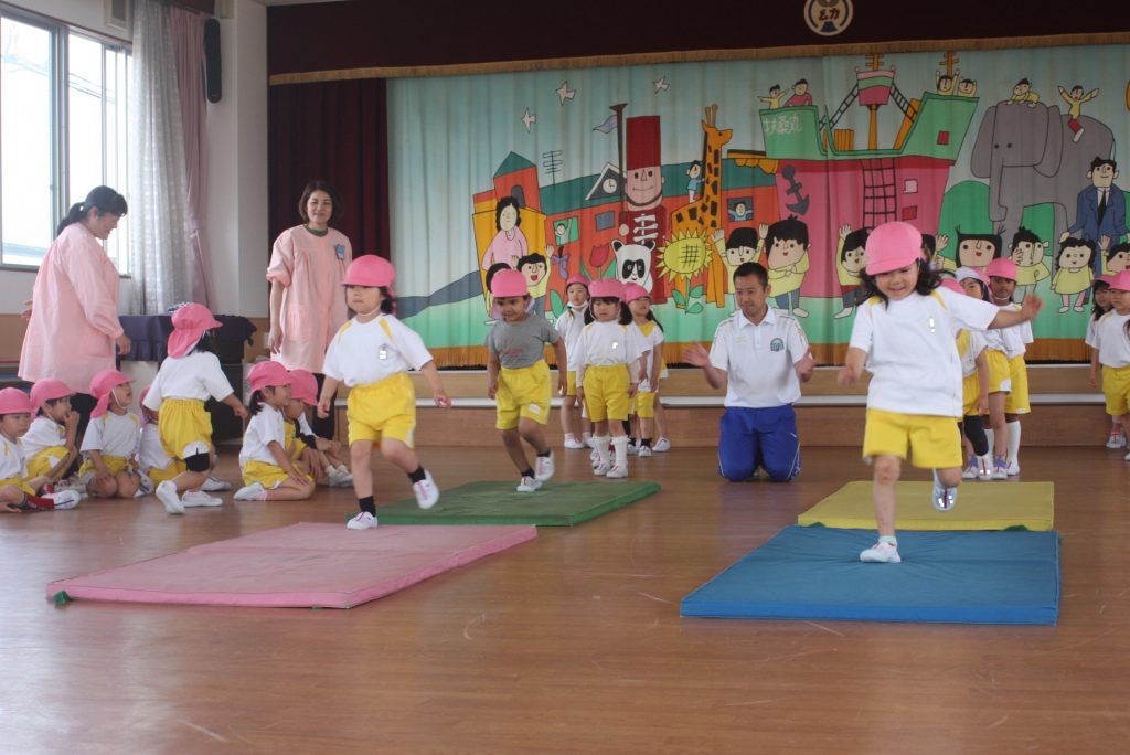 体育教室と書いて、これまでなぜか「たいそうきょうしつ」と呼んでいましたが、本年度からは「たいいくきょうしつ」と呼びます。桃学年は、友だちがチャレンジするときに「がんばれ!」の声がかかっていました。