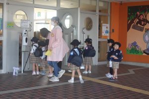 今週は、月曜日から金曜日まで1週間あります。休日の明けの月曜日でしたが、みんな元気に登園してくれました。お母さんとのお別れで泣いてしまう子もいますが、教室に入れば頑張っています。また、登園チェックのアプリも、お兄さん、お姉さんに教えてもらいながら頑張って入力できました。