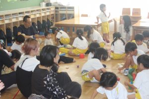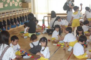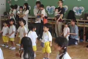 第3回体験入園 ご参加ありがとうございました 2025年09月19日 園の様子 多くのお友だちが、体験入園に来てくれました。それぞれの学年のお友だちと室内で遊んだ後、園庭でかけっこをしました。おせんべいのメダルを記念にプレゼントしました。