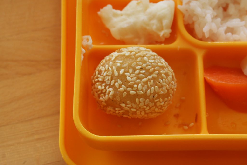今日の給食では、「中華胡麻団子」が出ました。とっても、おいしくいただきました。このクラスで給食を頂くのも2回となり、少し寂しい気持ちもあります。