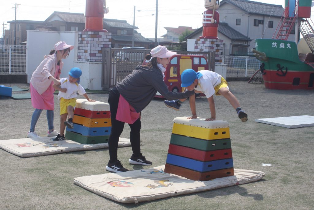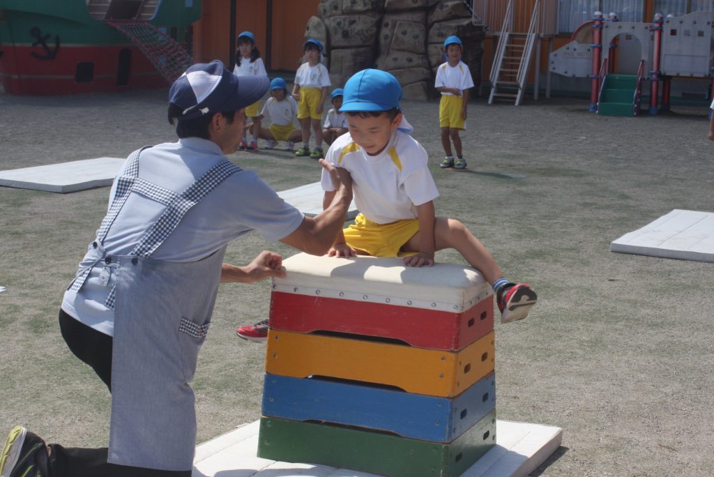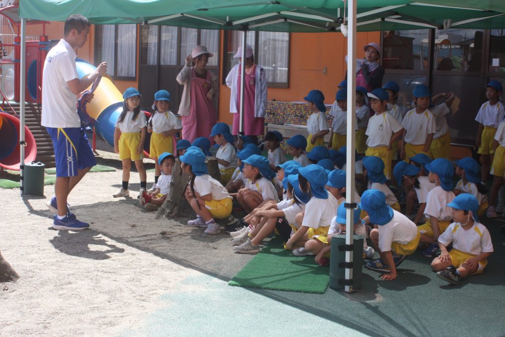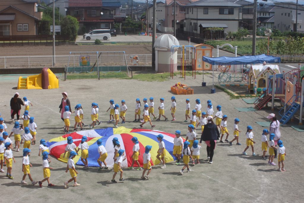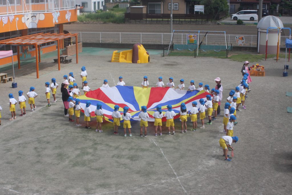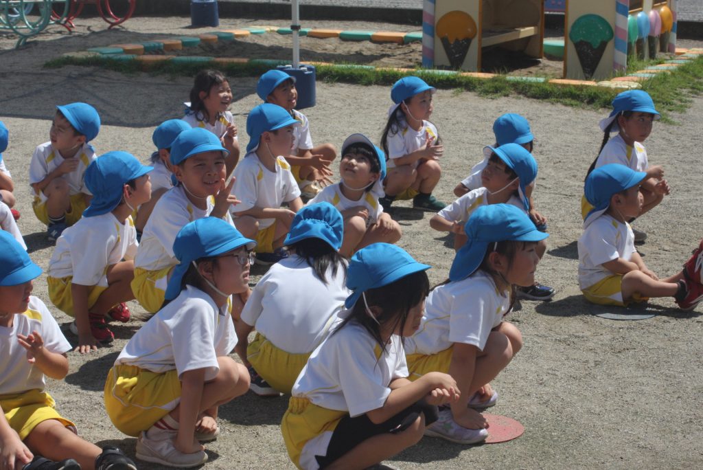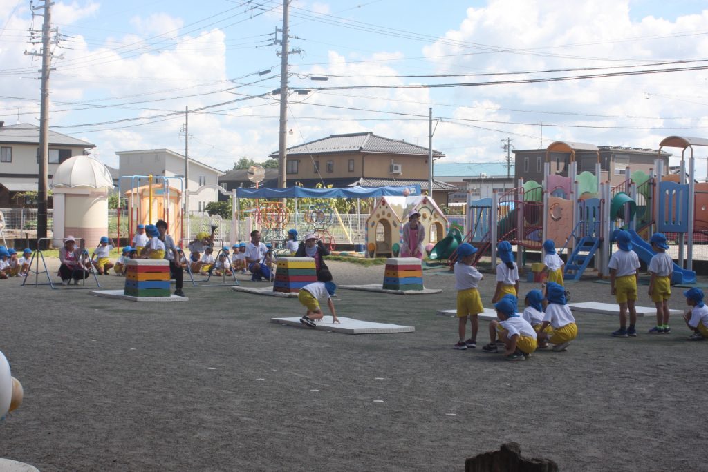 運動会の練習 2024年09月11日 青学年(年長児) 今日は、体育教室です。運動会と同じ場所で、練習をしました。先生の話をしっかり聞く姿、友だちに応援の声をかける子。さすが、青学年です。(バルーンの練習は、昨日の様子です)