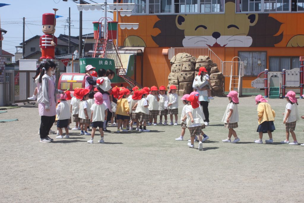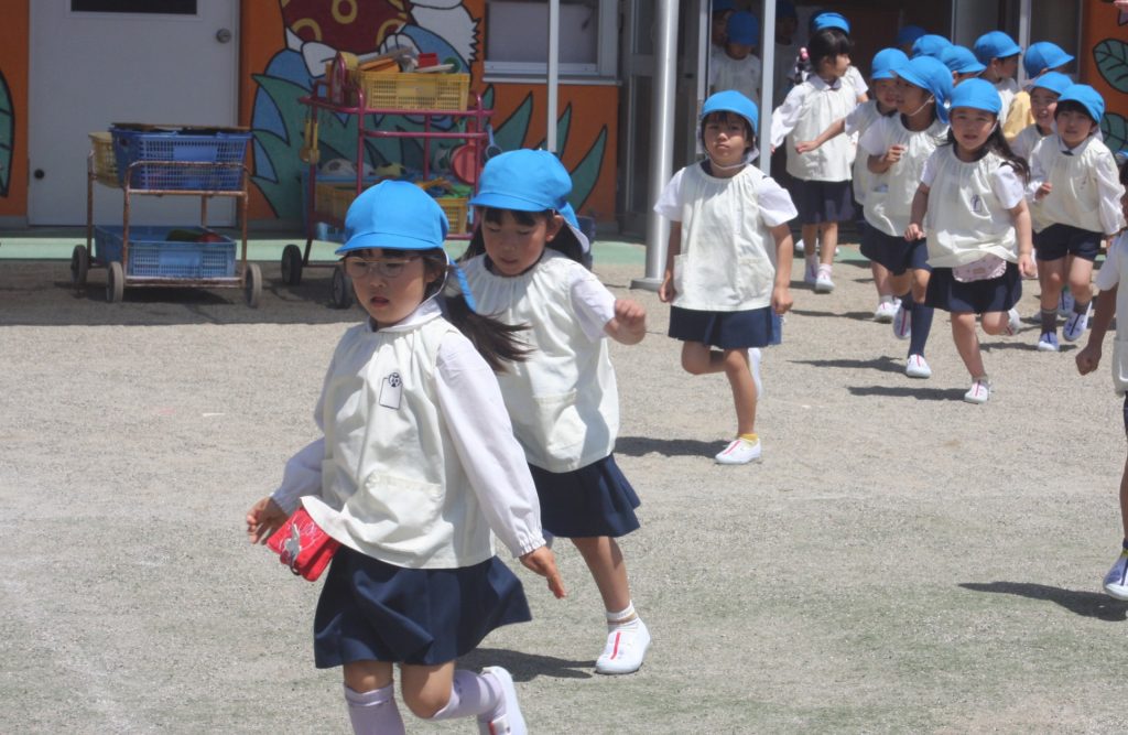 避難訓練(火災想定) 2024年05月17日 園の様子 本日の午前に、避難訓練を実施しました。今回の訓練は、火災発生時の避難です。2階音楽室分電盤から火の手があがったとの想定です。青学年は、普段の避難経路ではなく、中央の階段を降りて避難しました。また、赤学年すみれ組は、非常用滑り台を利用して、避難しました。朝礼で話した「お は し も」がきちんと守れました。(保護者の皆様へ:お子様に「おはしも」について聞いてみてください)