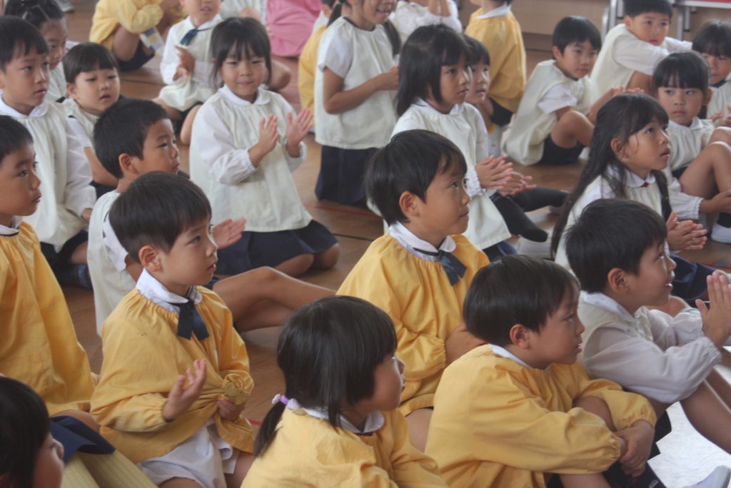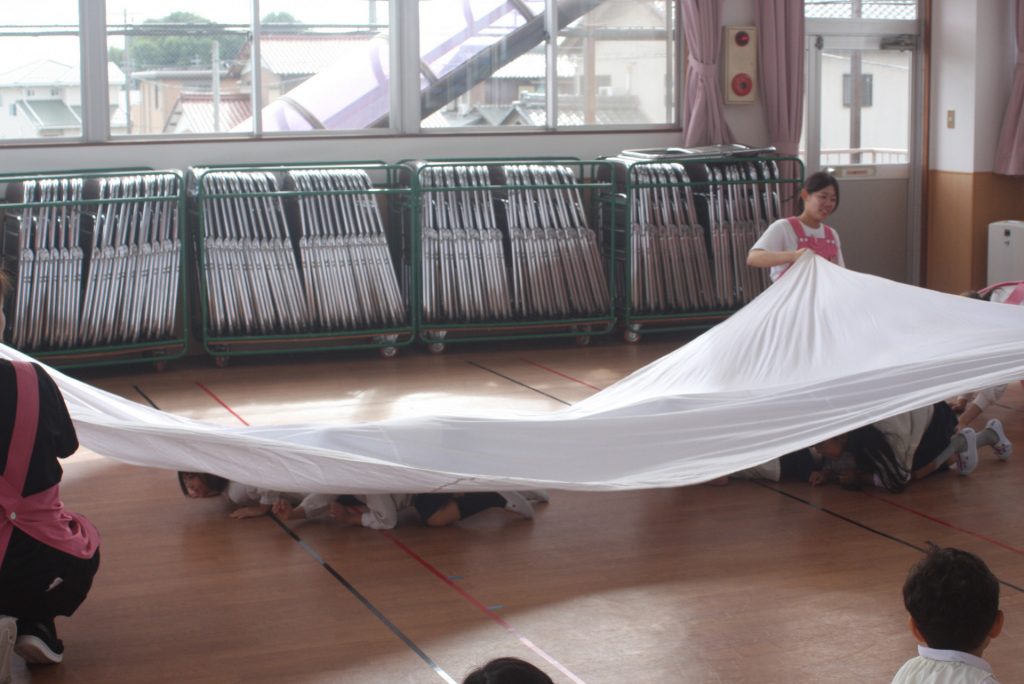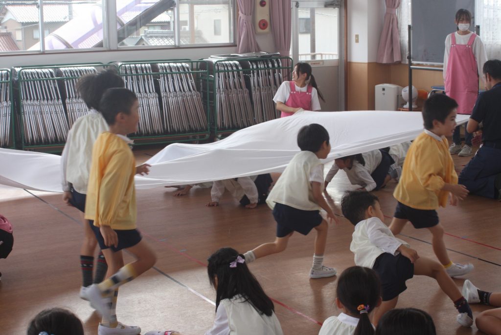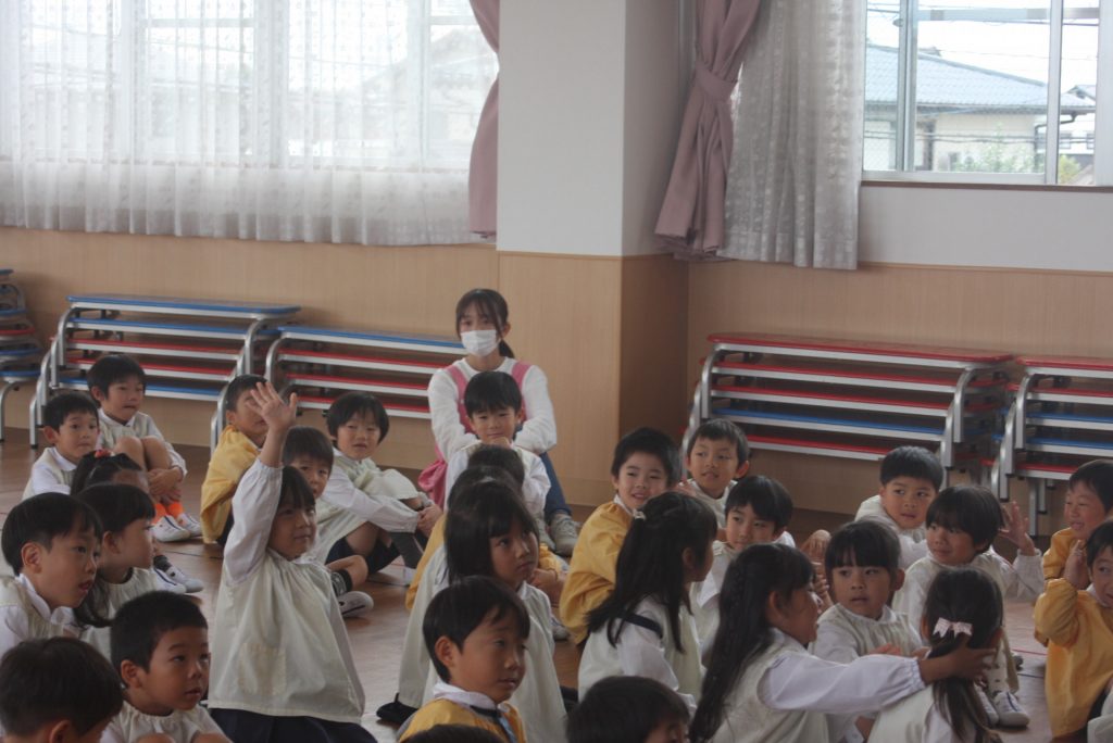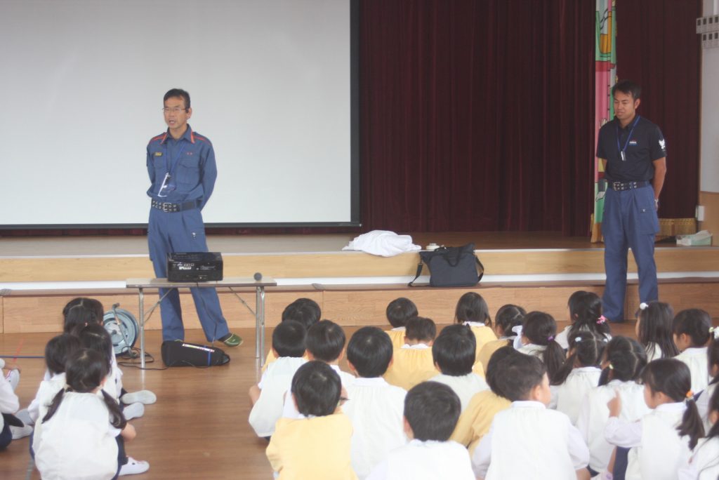 防火防災の話 2024年10月28日 青学年(年長児) 丹羽消防署より、職員の方に来ていただき、「防火防災の話」をしていただきました。子ぎつねの消防隊というDVDを視聴した後、実際に煙を見立てた布の下をくぐって避難する練習をしました。ありがとうございました。