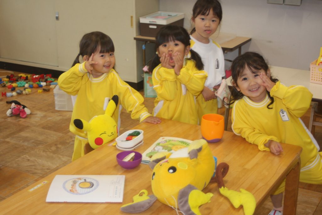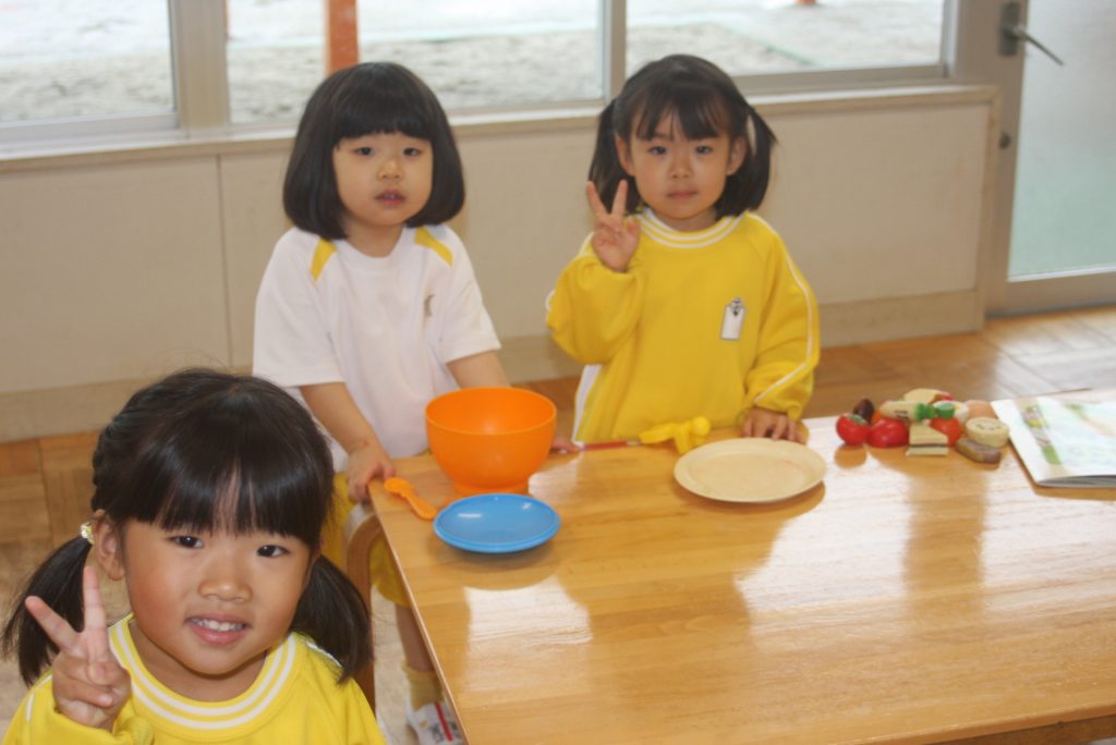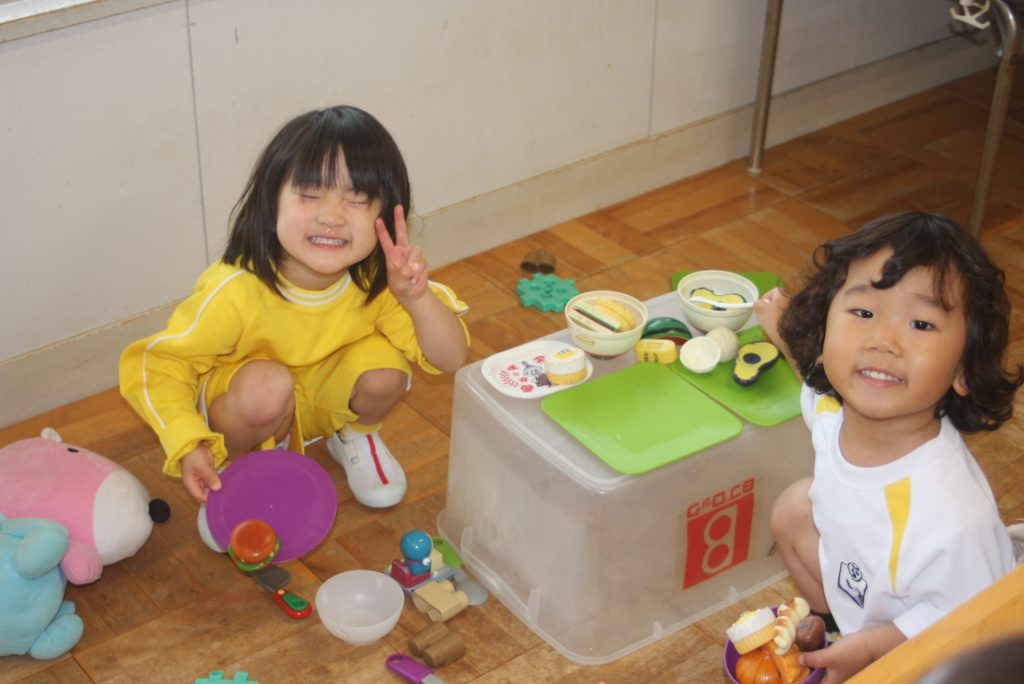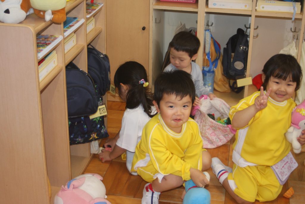 今日も、天気は雨です。園庭で遊ぶことはできず教室で過ごしました。雨の日は、すべりやすい所もあるので、ケガをしないよう注意するように話がありました。みんな、仲良く遊んでいますね。