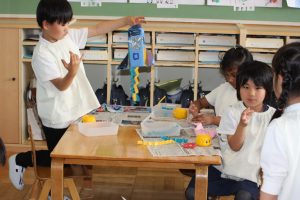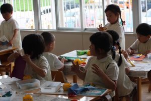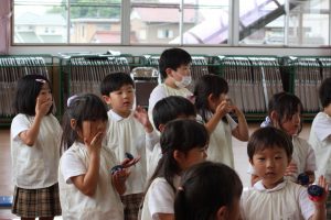青学年は、忙しいね 2025年05月27日 青学年(年長児) 朝リレーの練習をやっていたと思ったら、今度は教室で七夕の笹飾りを制作していました。この後の音楽教室も音程・リズムの勉強をしていました。忙しいですね。青学年。