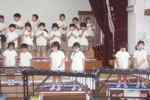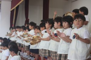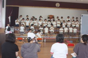 音楽教室 愛園会役員さん 2025年06月17日 愛園会 桃学年(年中児) 今日は、音楽教室の日でした。七夕まつり音楽発表会が近づくにつれ、練習にも熱が入ってきました。今日も、愛園会役員の方々が当日のお手伝いの計画の為、見学をされました。ありがとうございました。