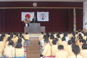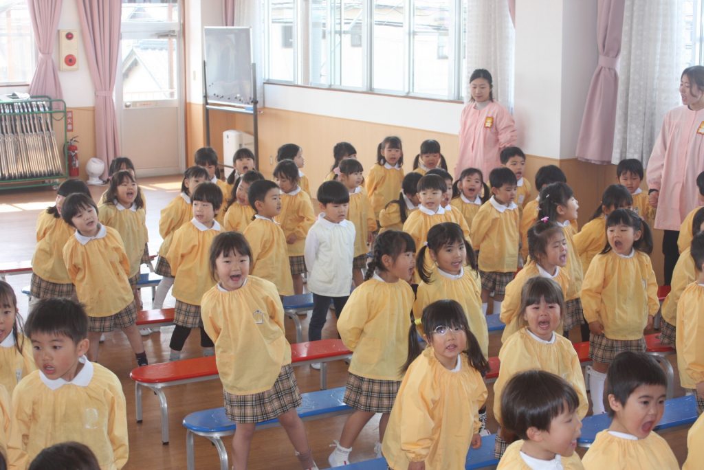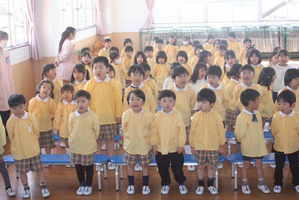 1学期始業式 2025年04月08日 園の様子 1学期始業式を行いました。桃(年中)・青(年長)学年は、遊戯室に集まり、しっかりとした態度で参加できました。赤(年少)学年は、放送で始業式を聞きました。園歌を大きな声で歌えましたね。