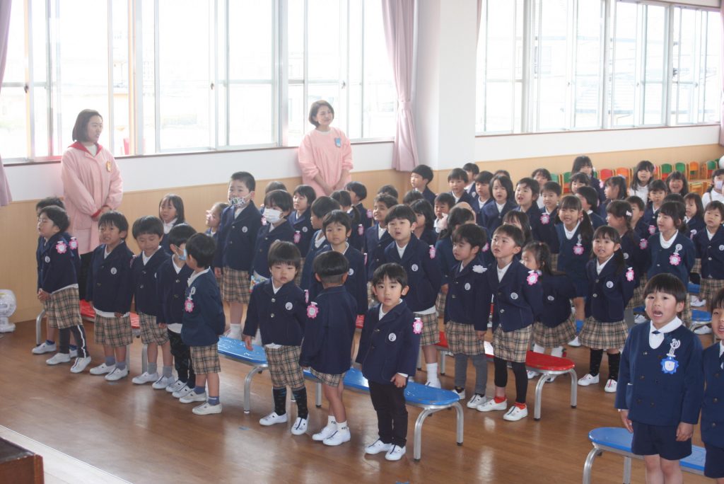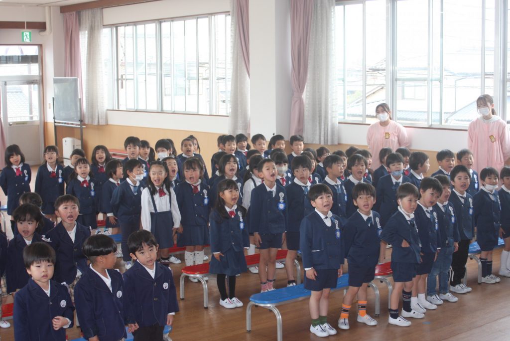 1学期始業式 2024年04月08日 園の様子 年中桃学年年長青学年が遊戯室で、年少赤学年は教室で始業式を行いました。元気なあいさつと大きな声で歌う園歌すばらしかったです。さあ、1学期のスタートです。お友だちと一緒に学習・運動にがんばりましょう。 1学期始業式式辞ダウンロード