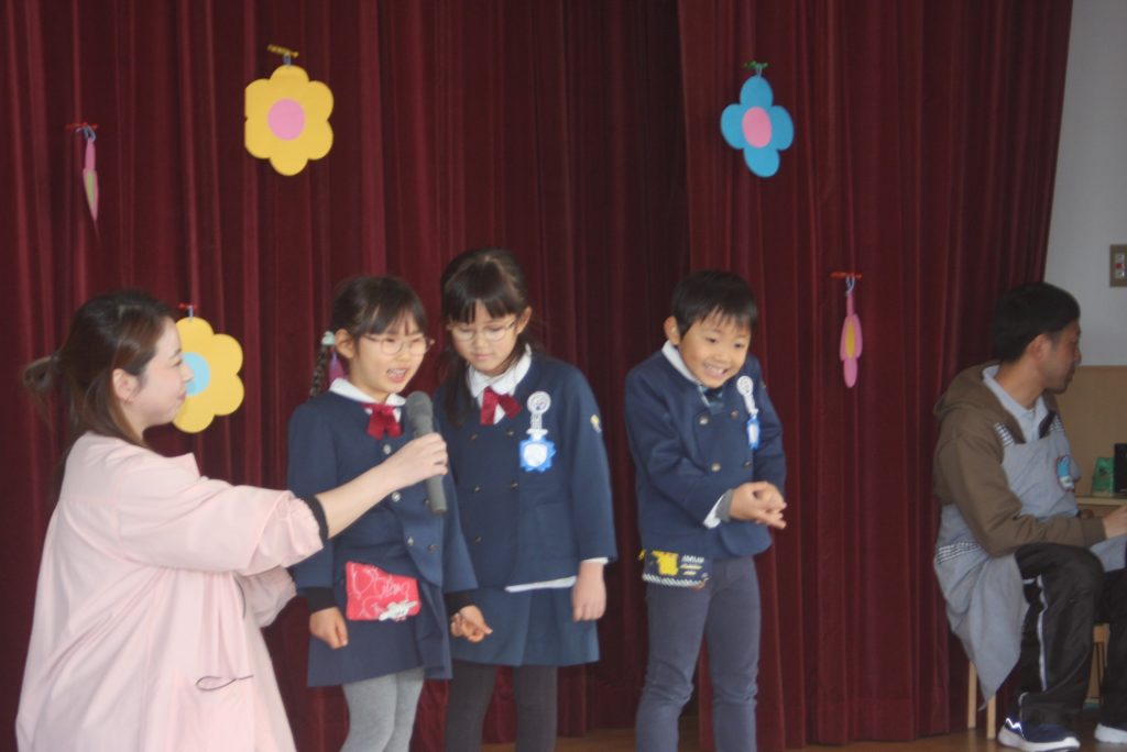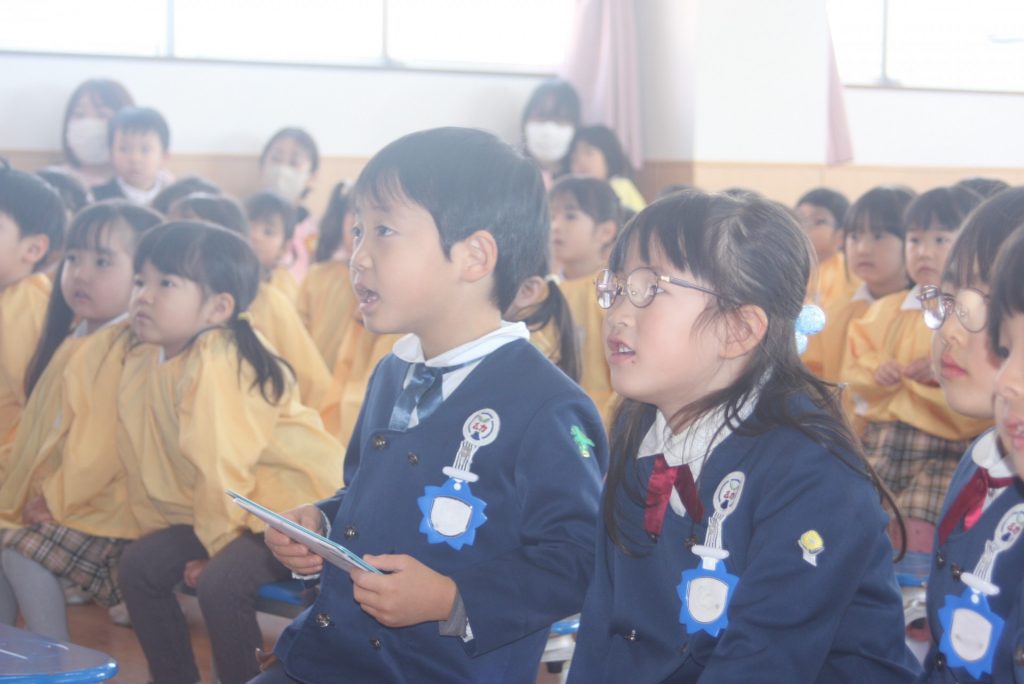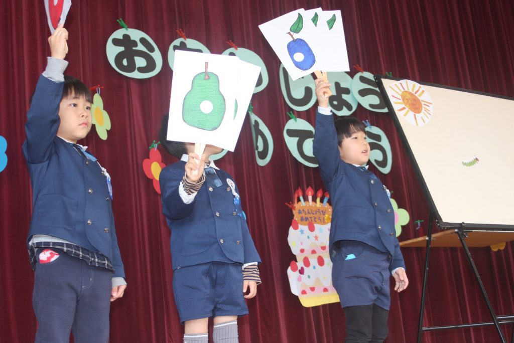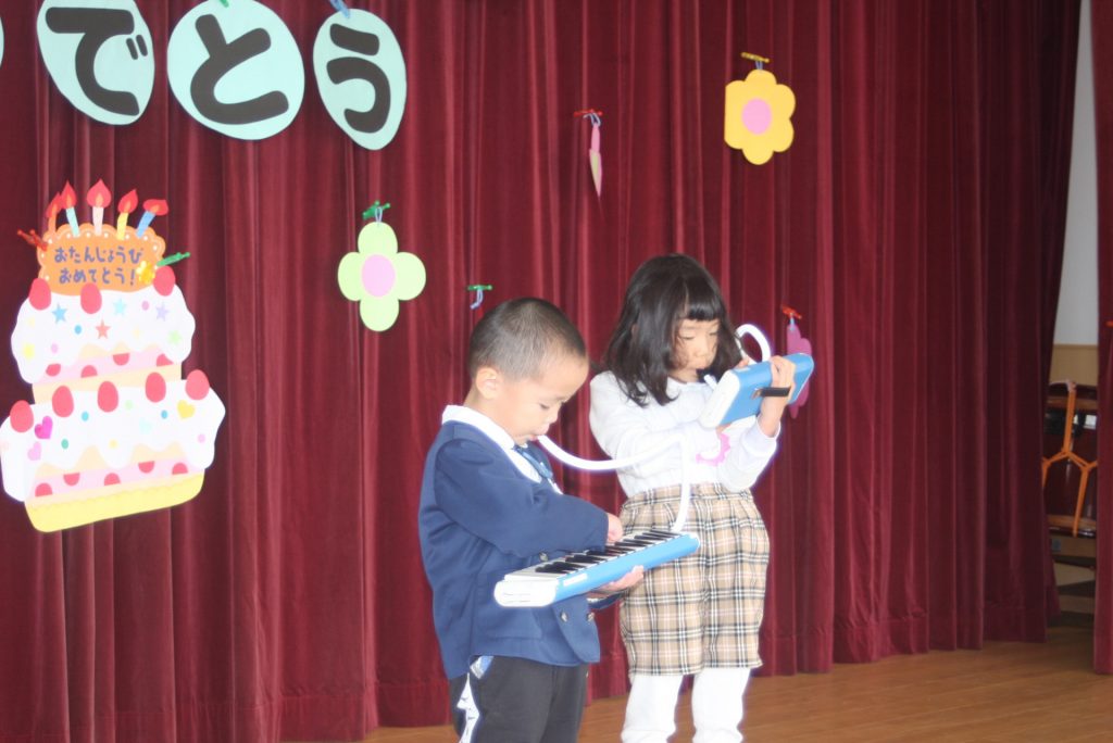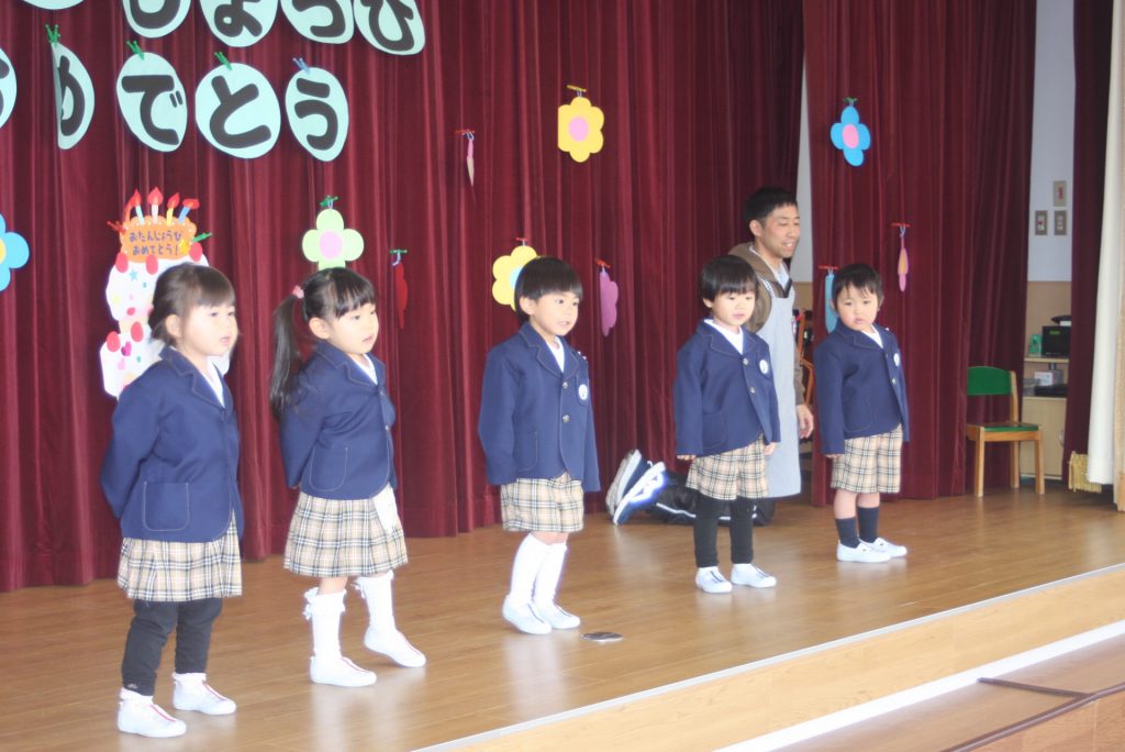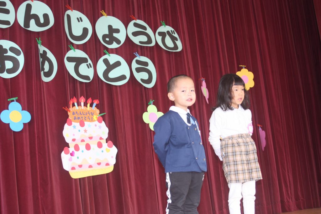 今日は、1月生まれのお友だちのお誕生日会でした。どの学年も発表をがんばってくれました。他のお友だちも見る態度がとってもよかったです。
