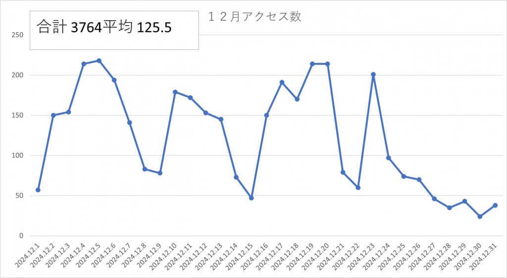 12月ホームページへの閲覧状況は、アクセスページ3764、アクセス人数平均125.5名でした。
