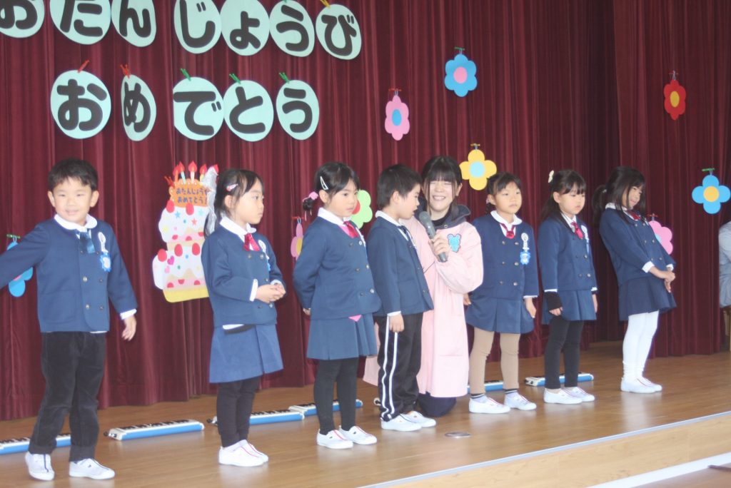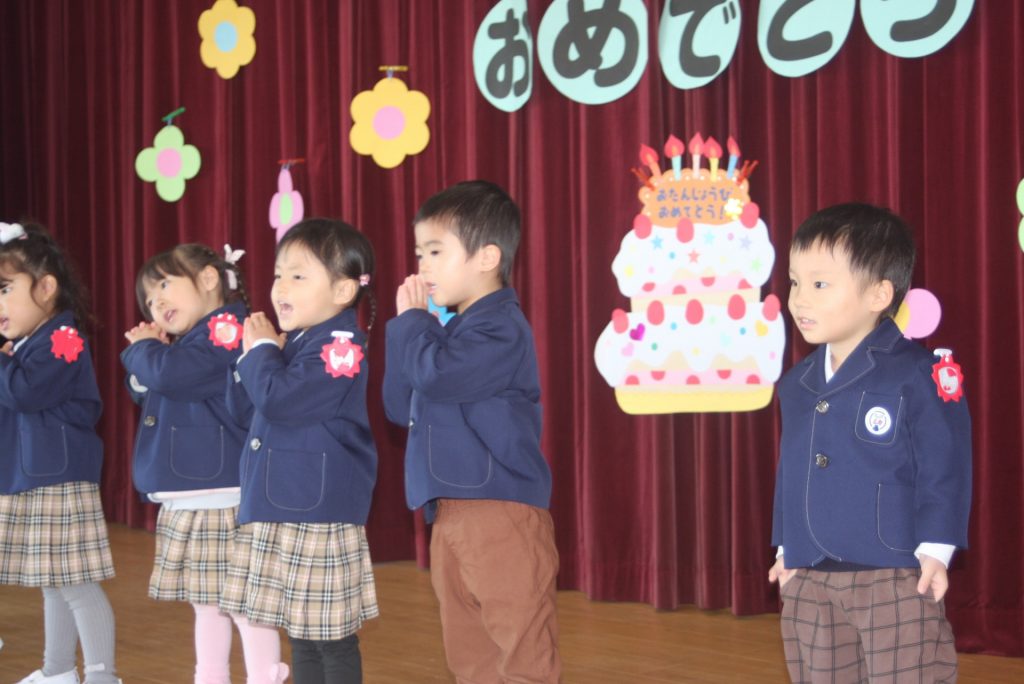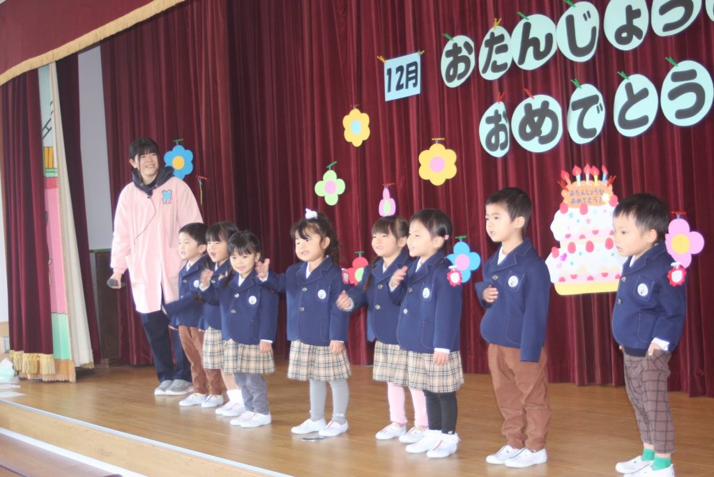 12月お誕生日会 2024年12月17日 園の様子 今日は、12月生まれのお友だちをお祝いする「お誕生日会」でした。どの学年も立派な発表でした。その中で、お正月の歌を聞いて、「もういくつ寝るとお正月」子どもたちの成長と月日が流れるのは早いなと感じました。