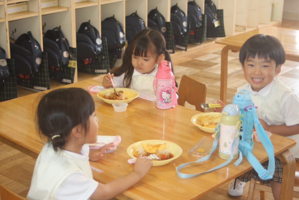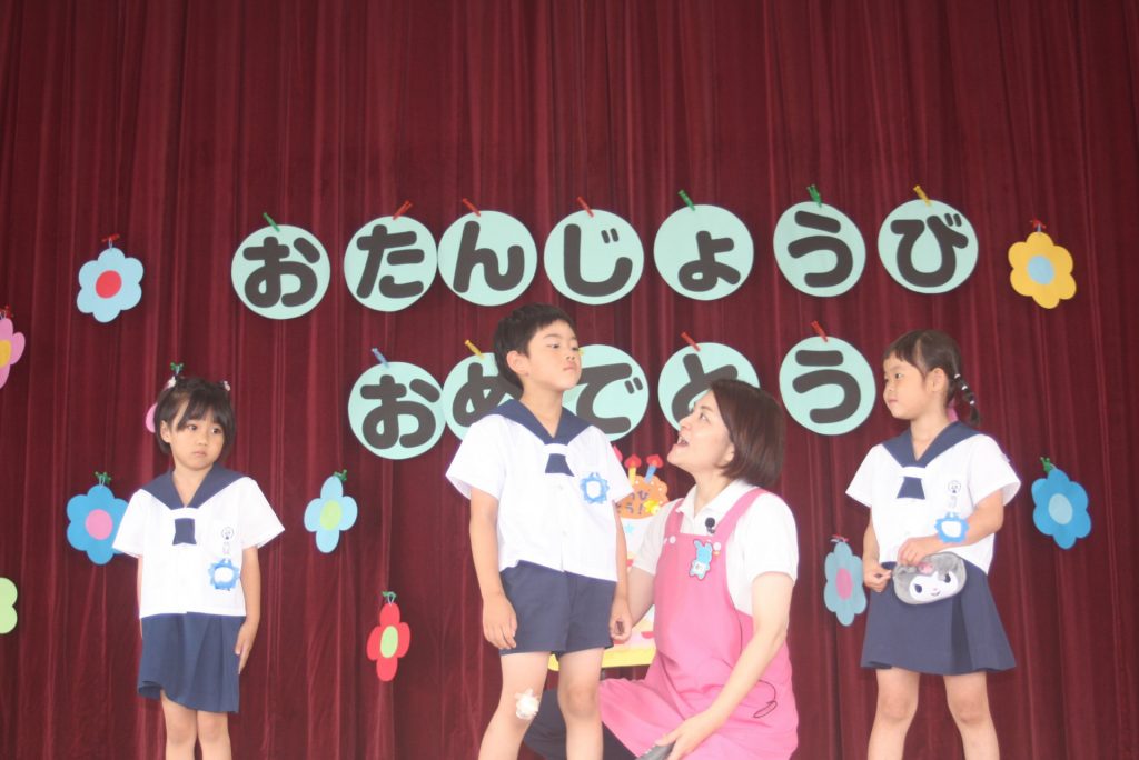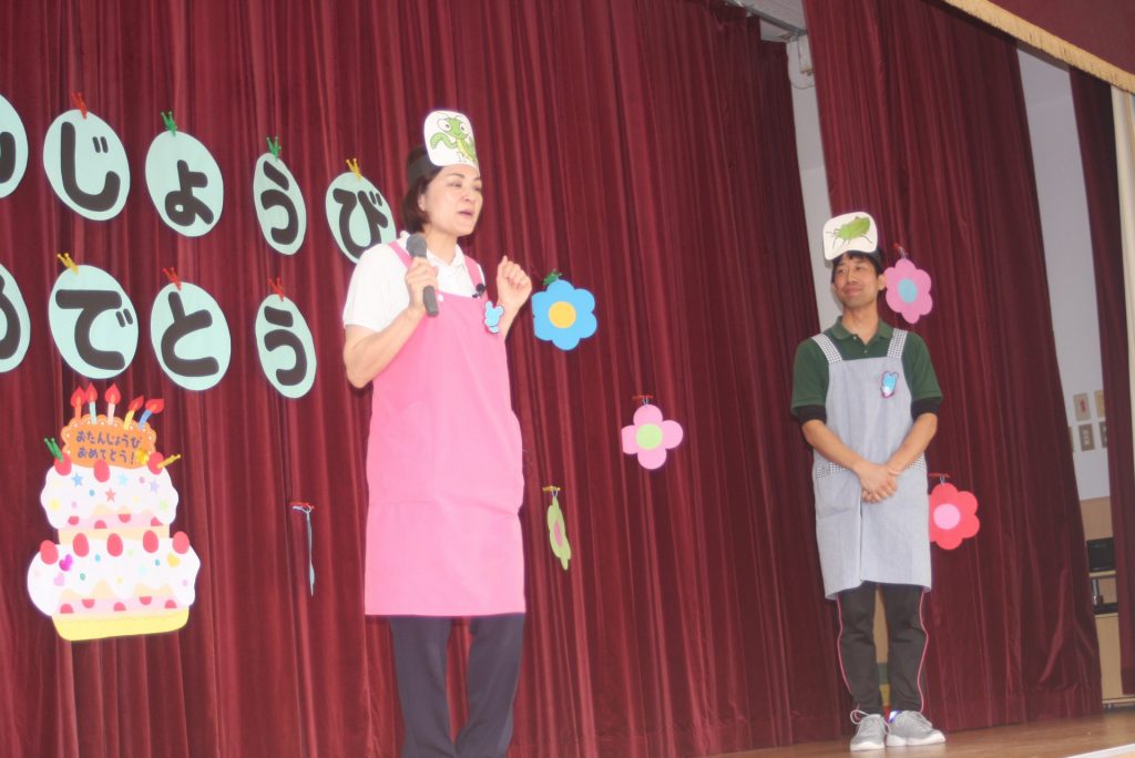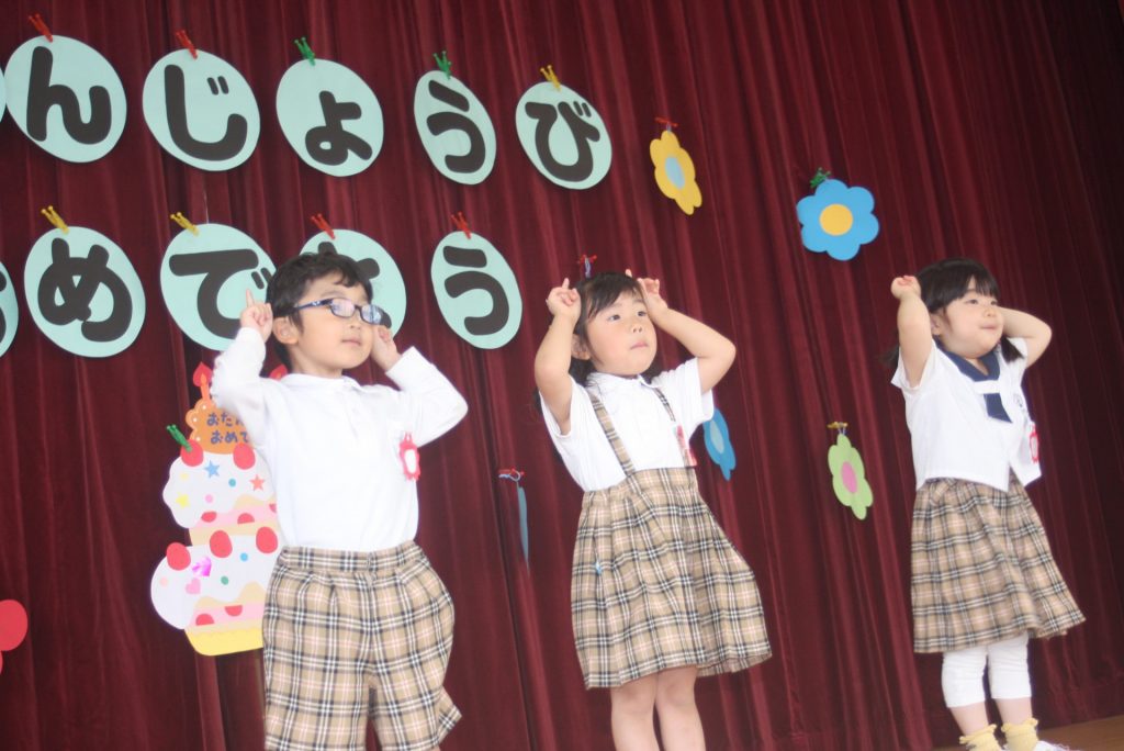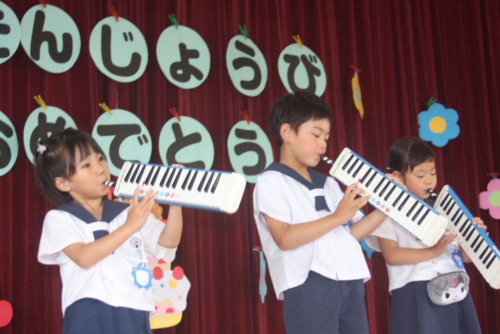 5月 お誕生日会 2024年05月31日 園の様子 5月お誕生日会を行いました。それぞれの学年歌や鍵盤ハーモニカの披露をしてくれました。先生たちの出し物も楽しかったですね。そして、今日の給食は、お誕生日会特別メニュー「ハヤシライス オムレツ オレンジゼリー」でした。