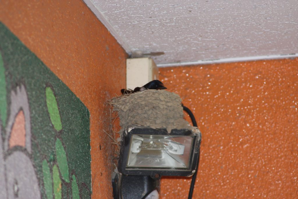 15日(木)に種蒔きした「ヒマワリ」「オクラ」が発芽しました。また、燕が一度壊されしまった巣を元通りに戻し、抱卵しています。
