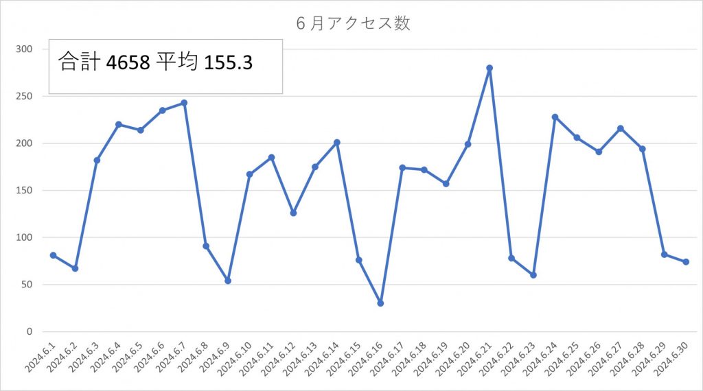4月179.6 5月180.3 6月155.3 魅力ある記事をUPするよう頑張ります。